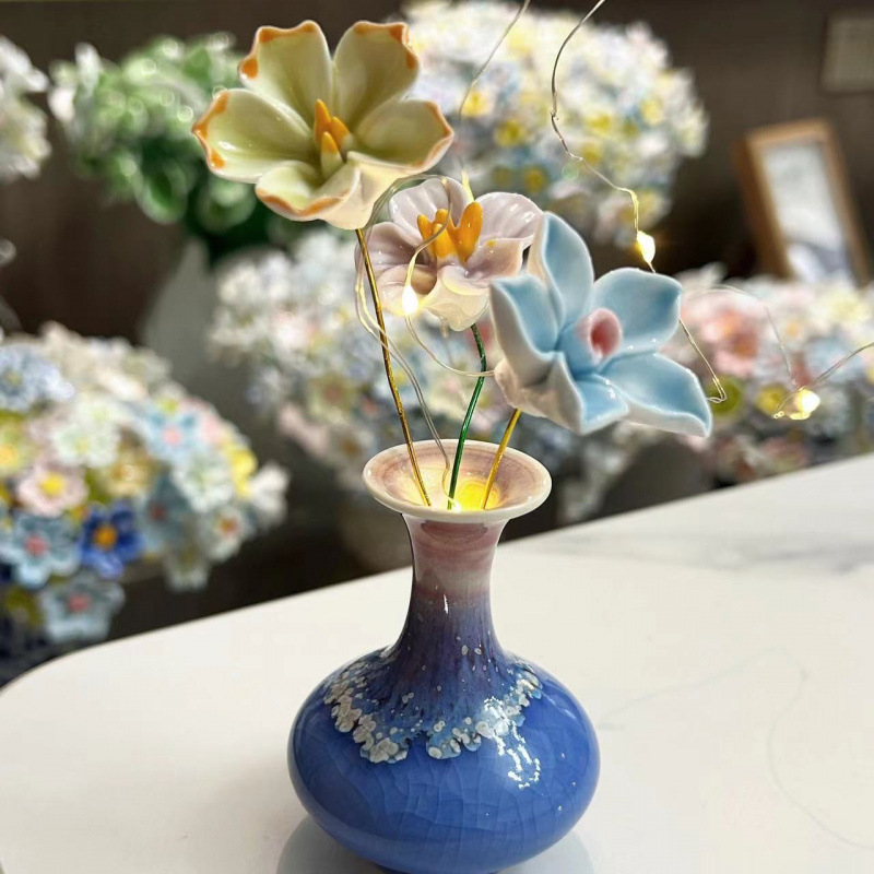 hidden celadon glaze narrow bottle +3 flowers (color required)
