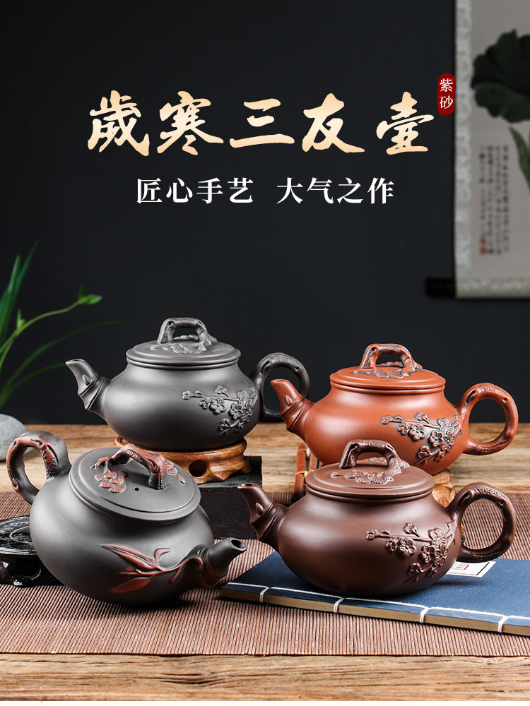 old and cold sanyou pot +6 large cups + wood grain tray black