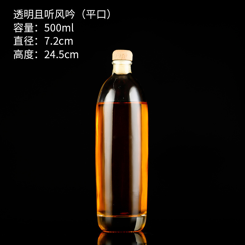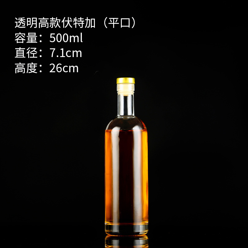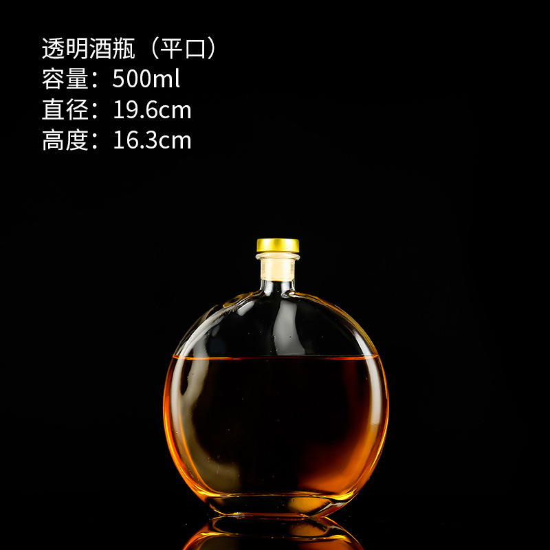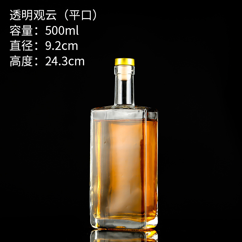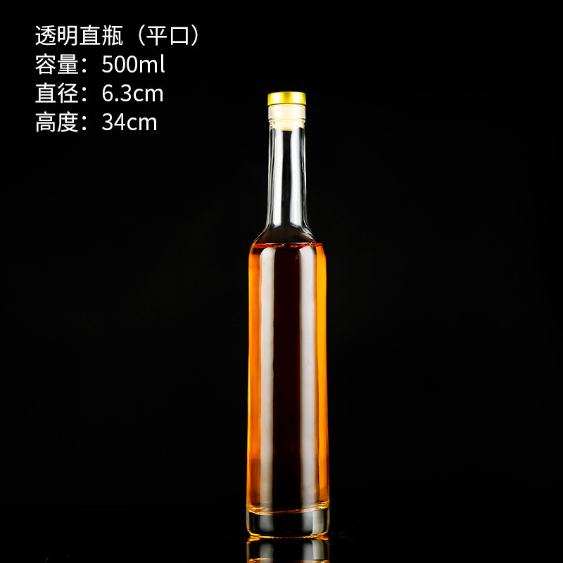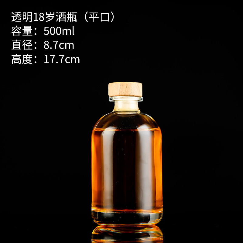 transparent 18-year-old wine bottle 500ml flat mouth; transparent