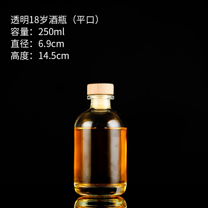 transparent 18-year-old wine bottle 250ml flat mouth; transparent