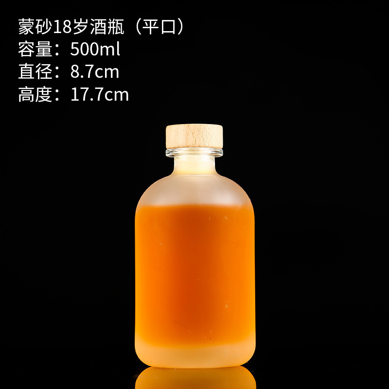 frosted 18-year-old wine bottle 500ml flat mouth; transparent