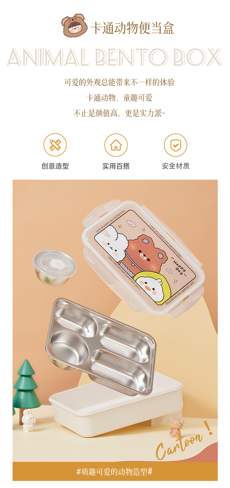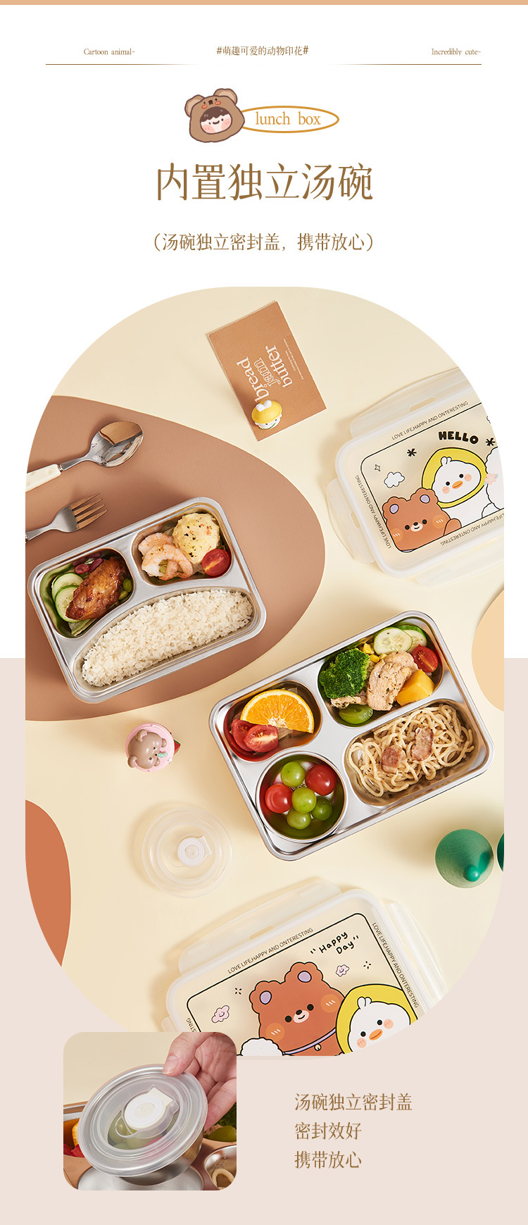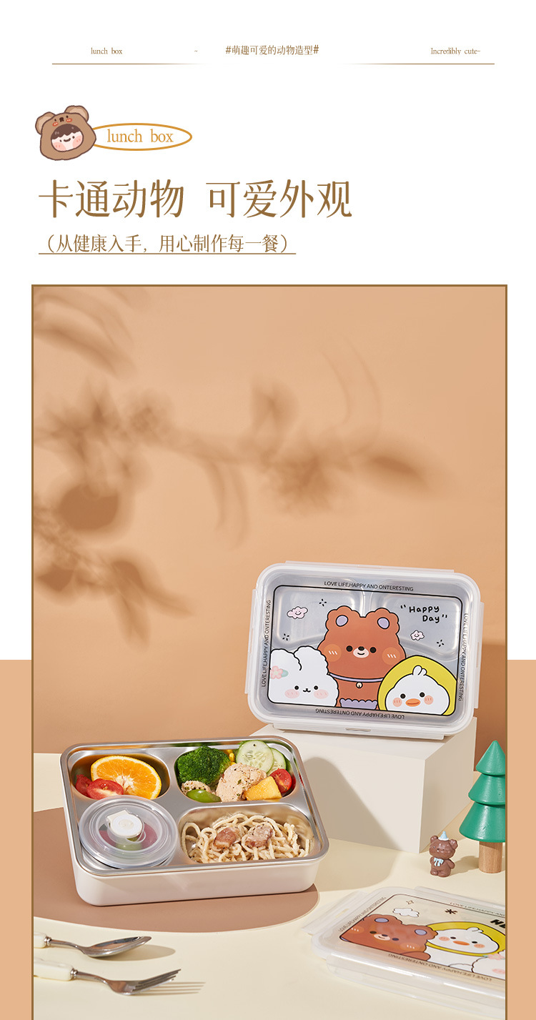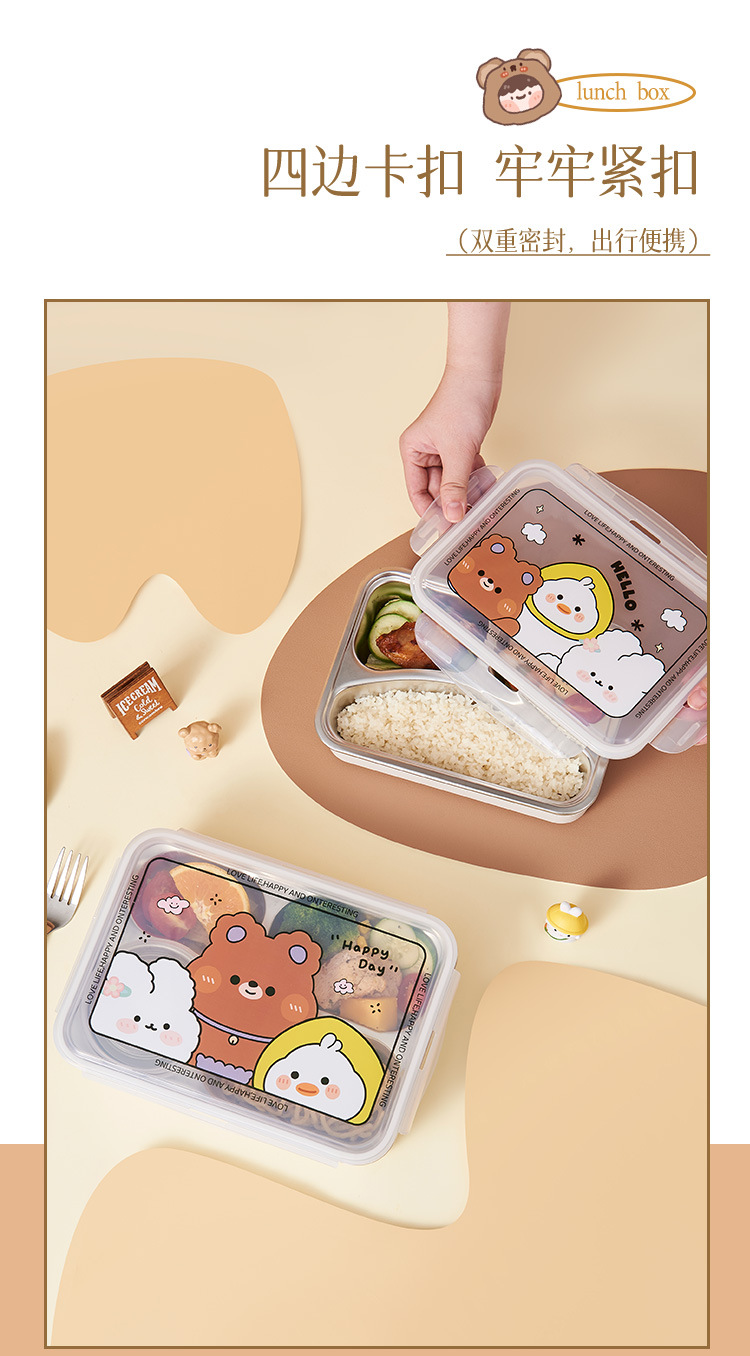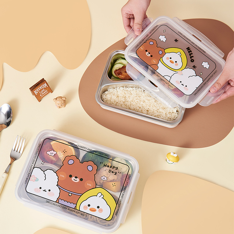 children's fun 304 stainless steel lunch box (with soup bowl) insulated lunch box multi-grid lunch box children primary school student office worker