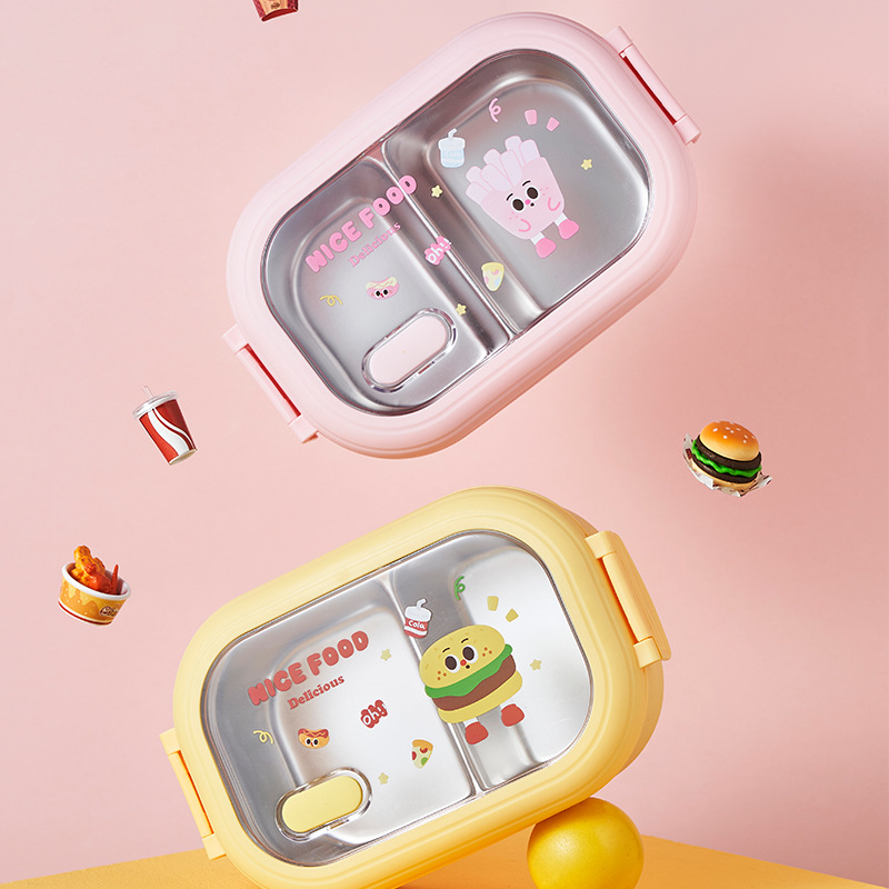 french fries hamburger stainless steel lunch box insulation special compartment children cartoon dinner plate office lunch box lunch box