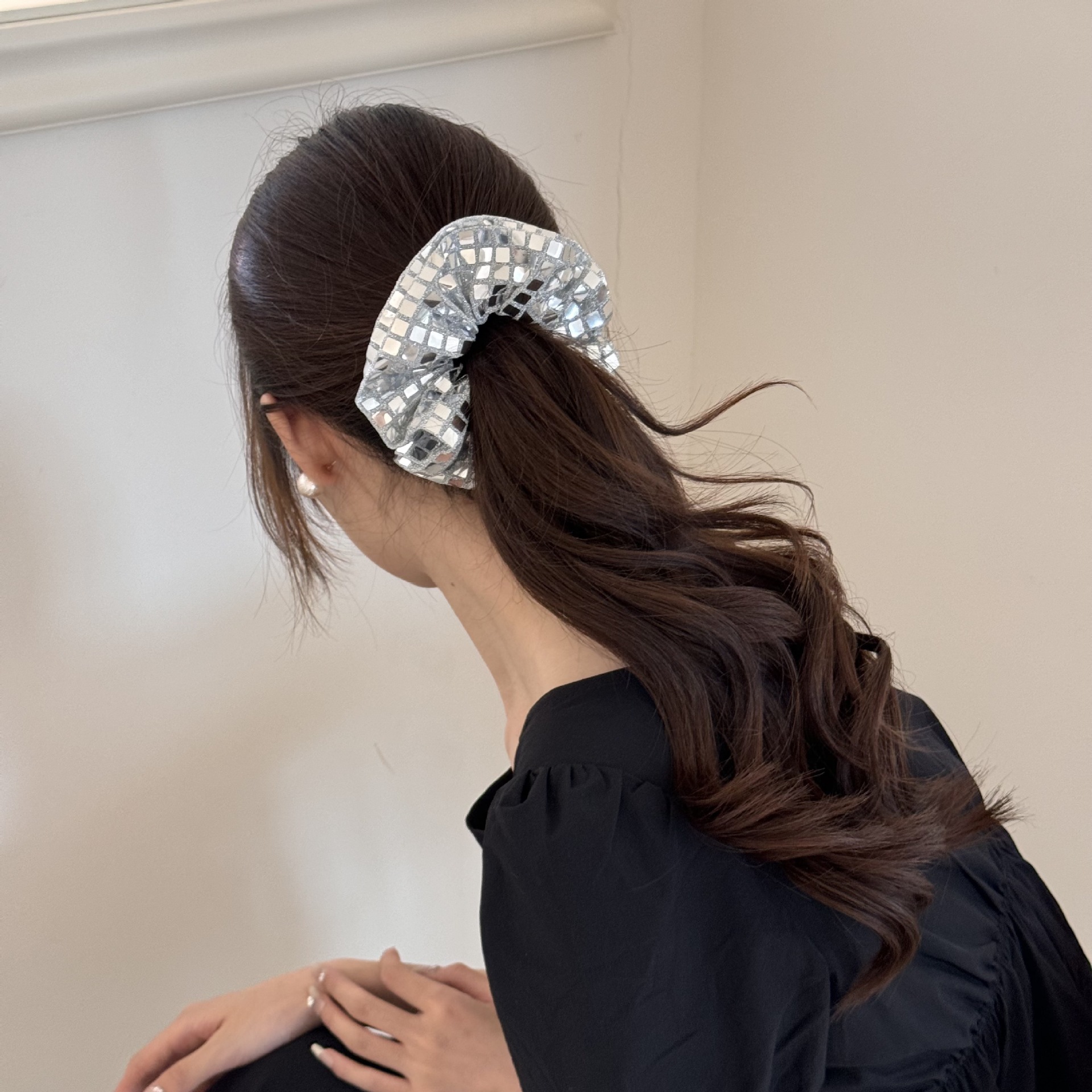 black paillette hair ring