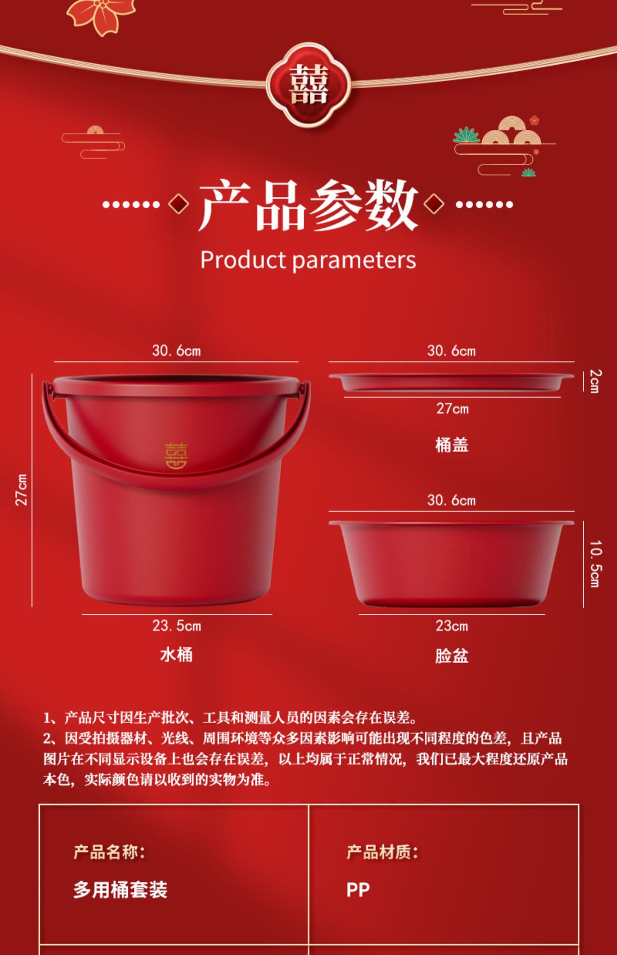 bucket + basin + cover [xi character pattern] 1 set