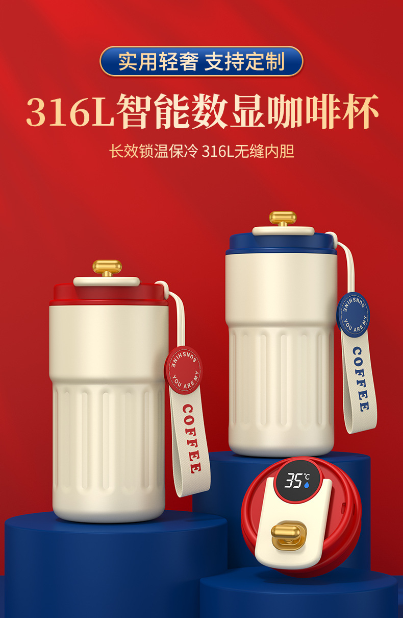 blue-316 upgrade digital display thermos cup + coffee