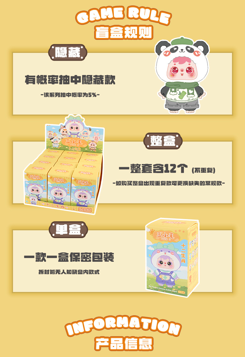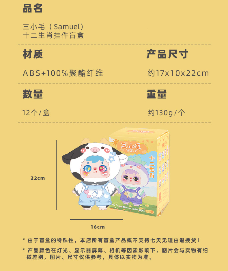 | 【Product Name】 | Three Little Hair (Samuel) 12 Animal Zodiac Soft Toy Mystery Box |