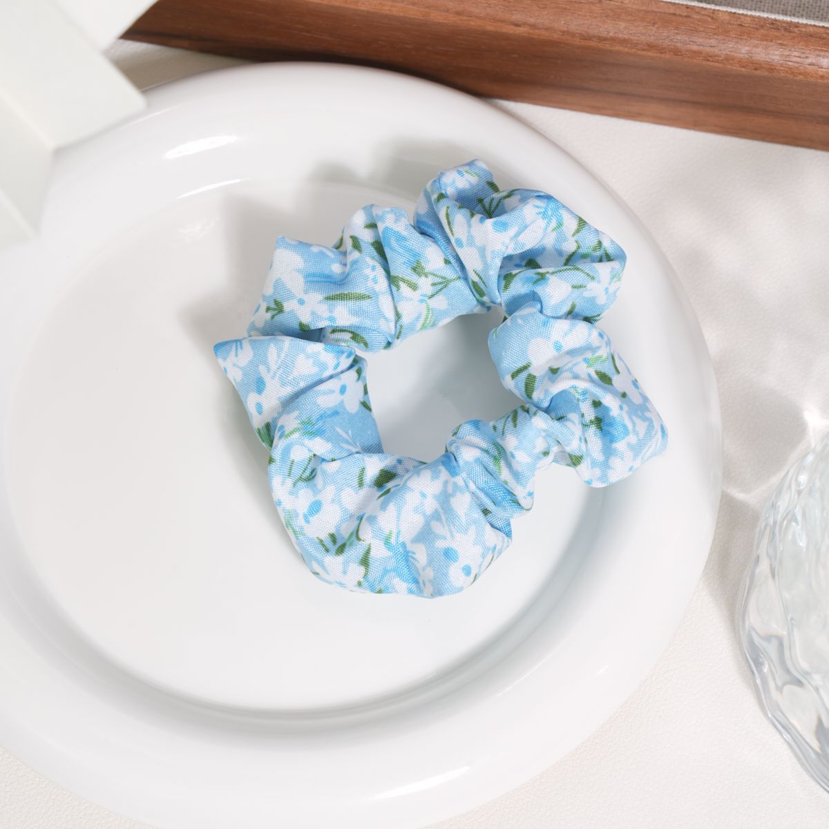 floral hair ring-light blue