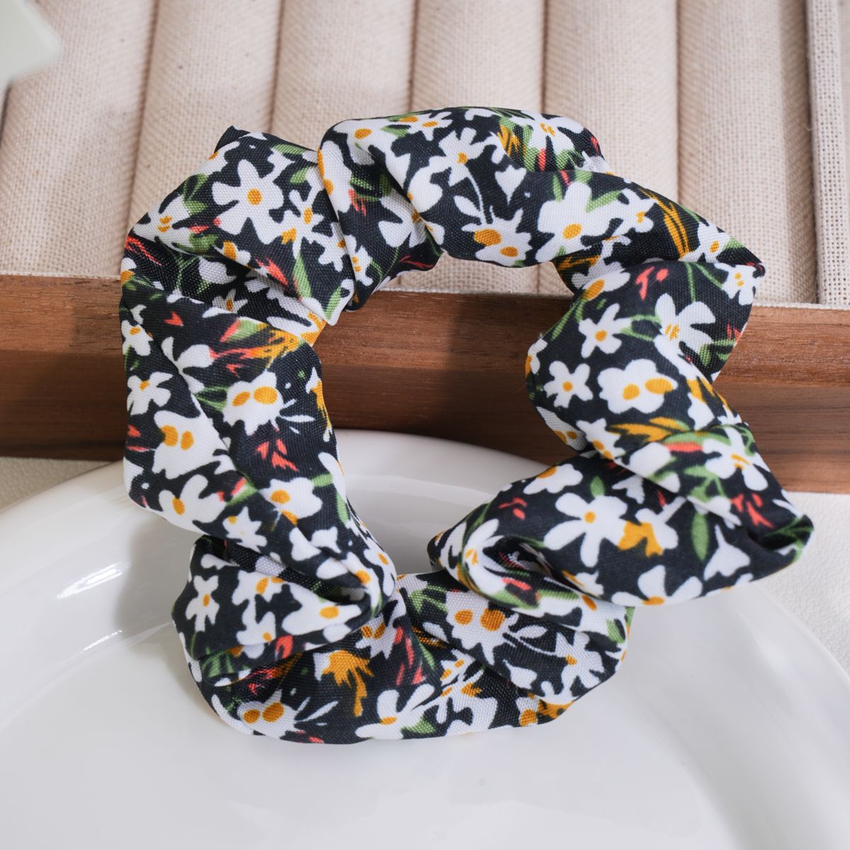 floral hair ring-black