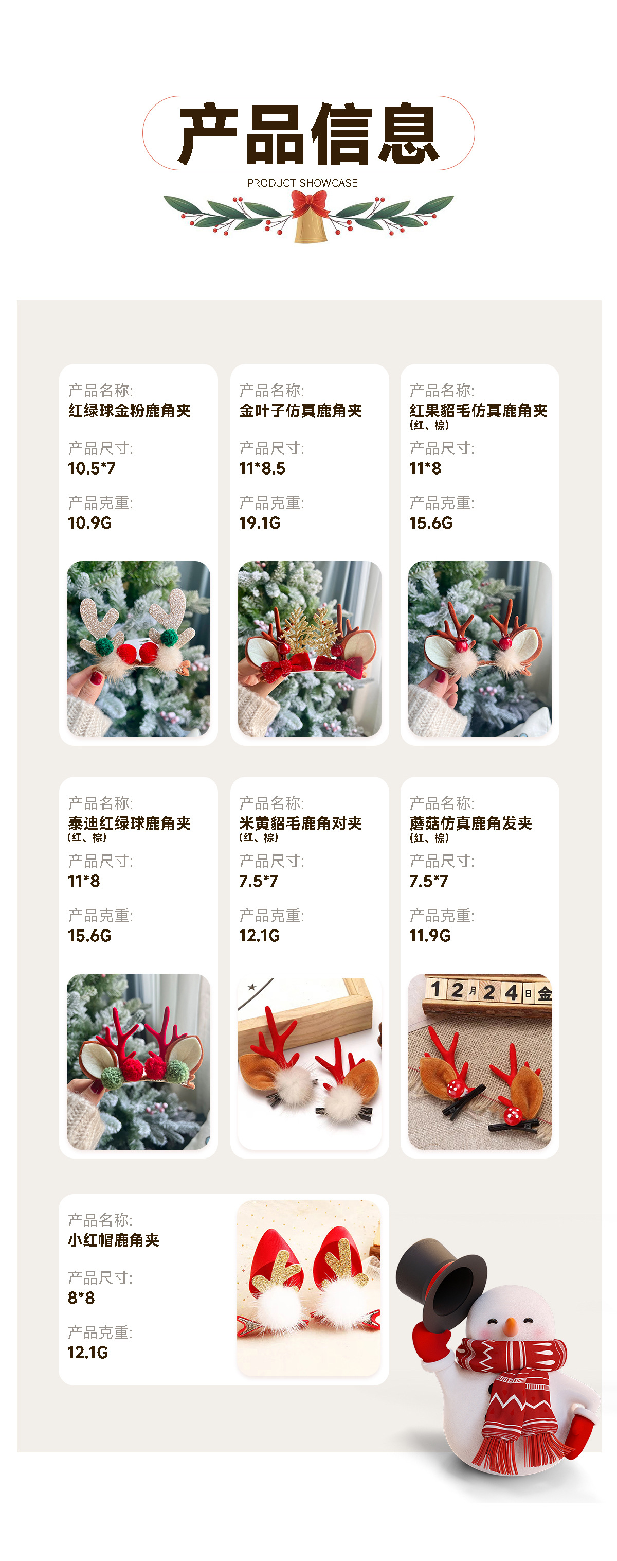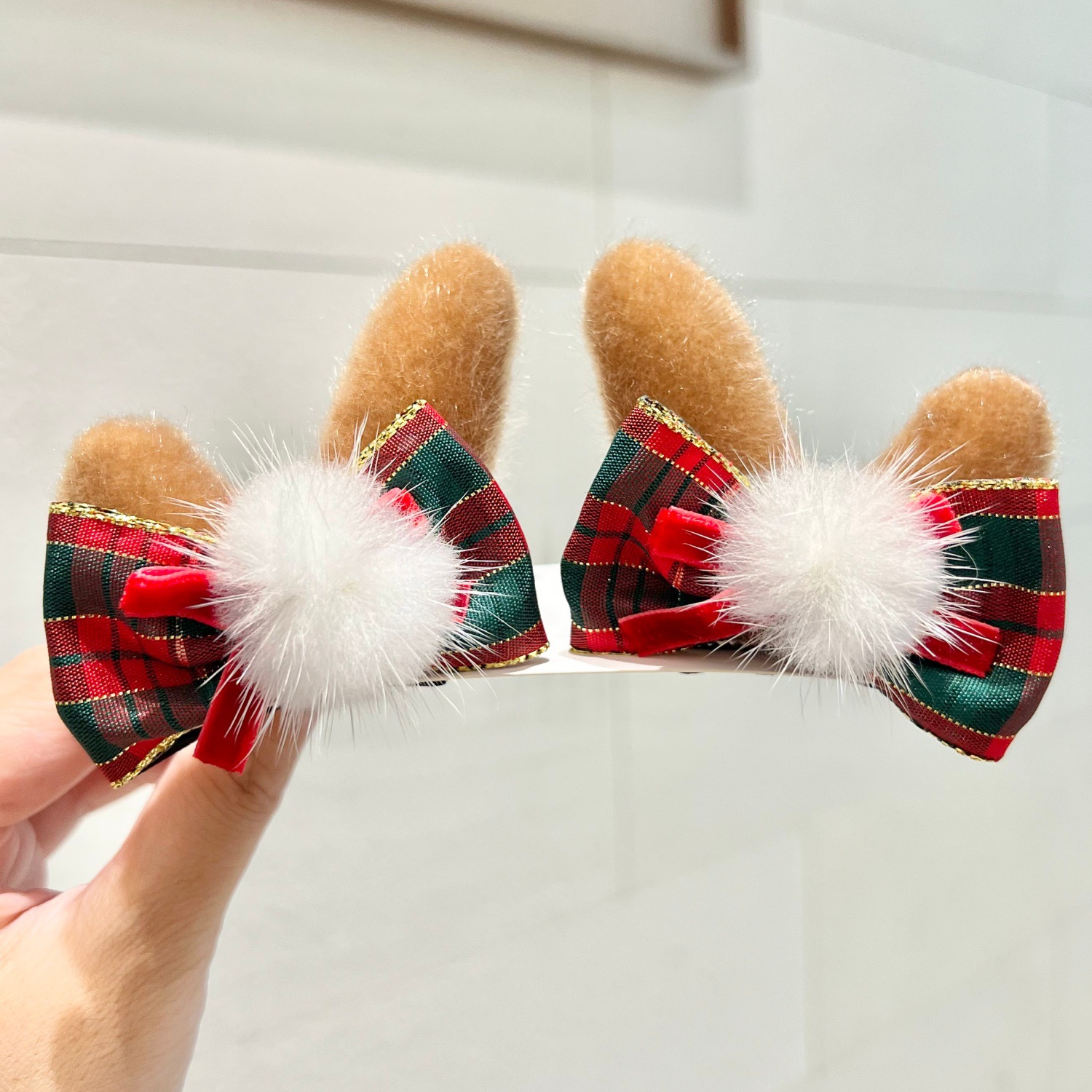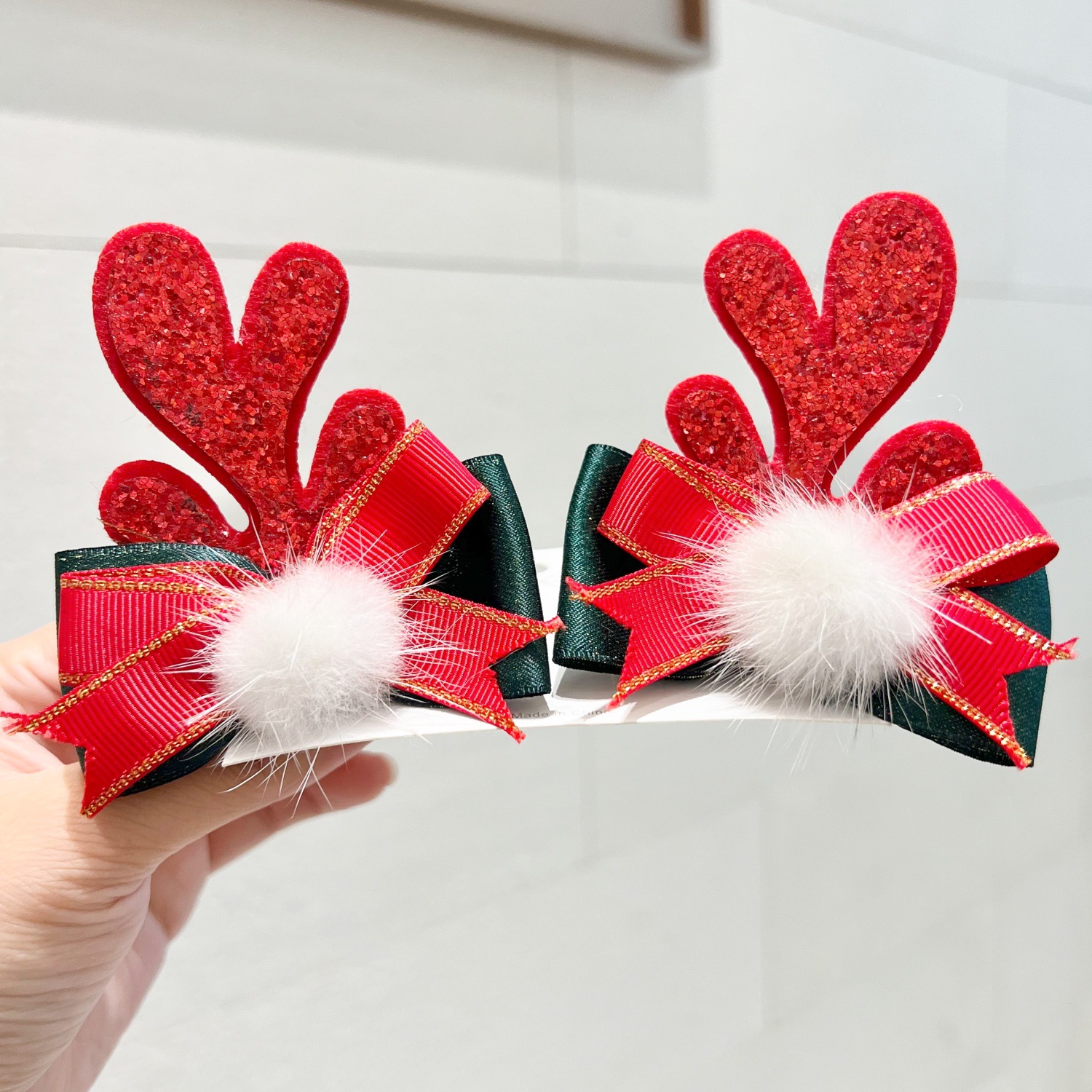mink hair bow red antlers a pair of hairclips