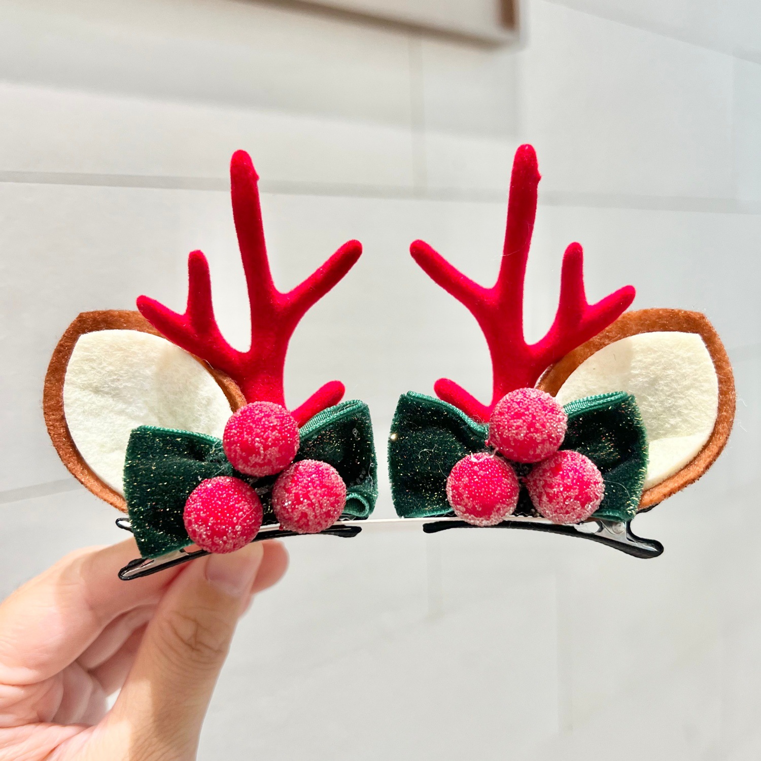 bell green ball antlers a pair of hairclips-red
