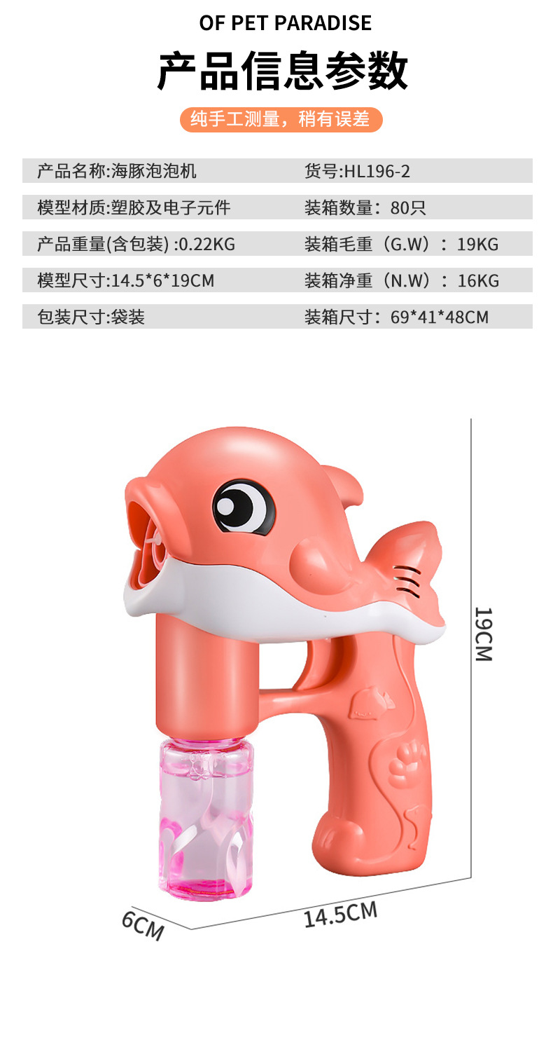 hl196-2 dolphin style bubble machine (pink)