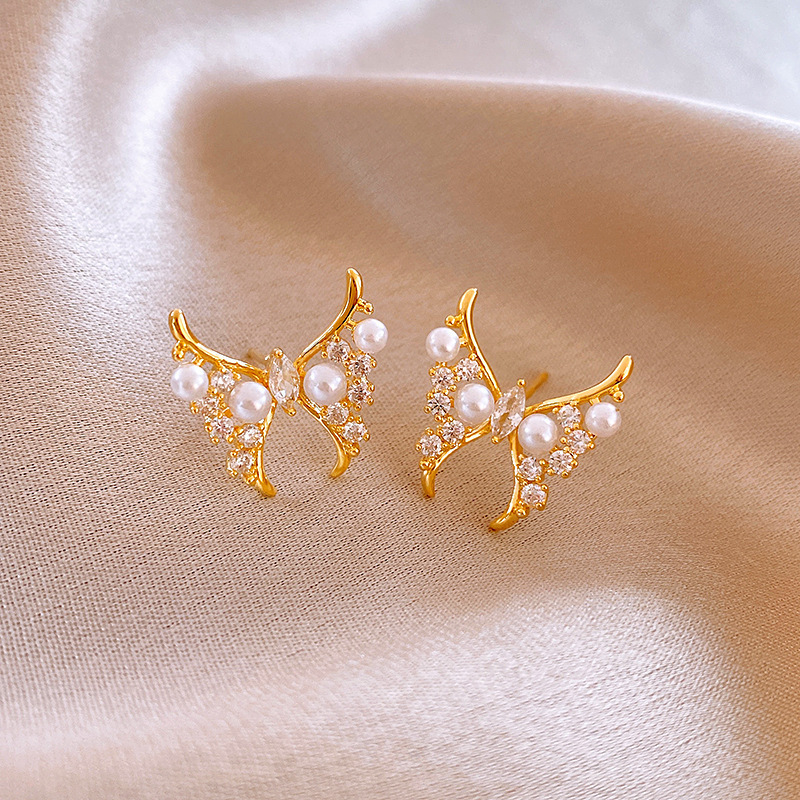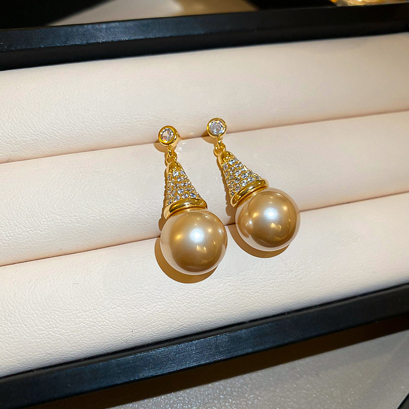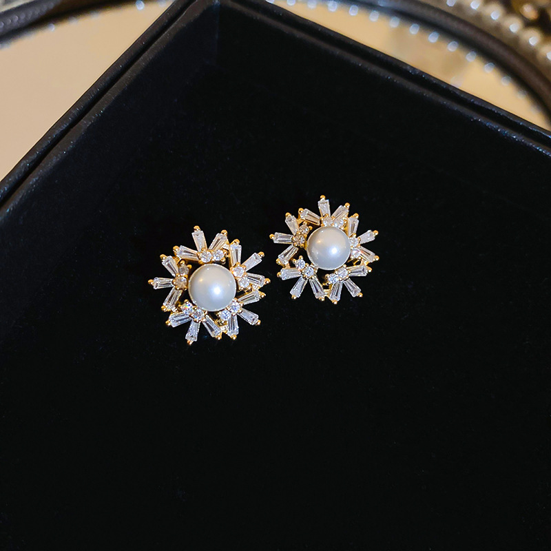115# silver needle-golden-pearl (real gold plating)