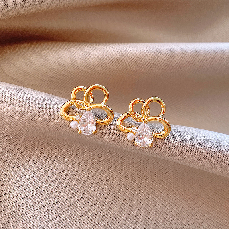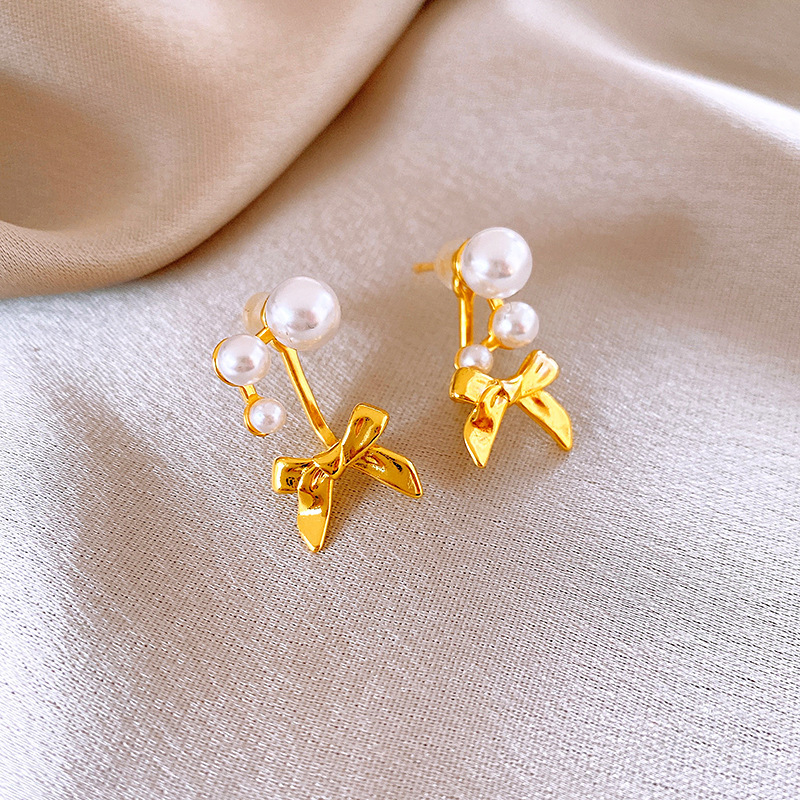 116# silver needle-golden-bow (real gold plating)