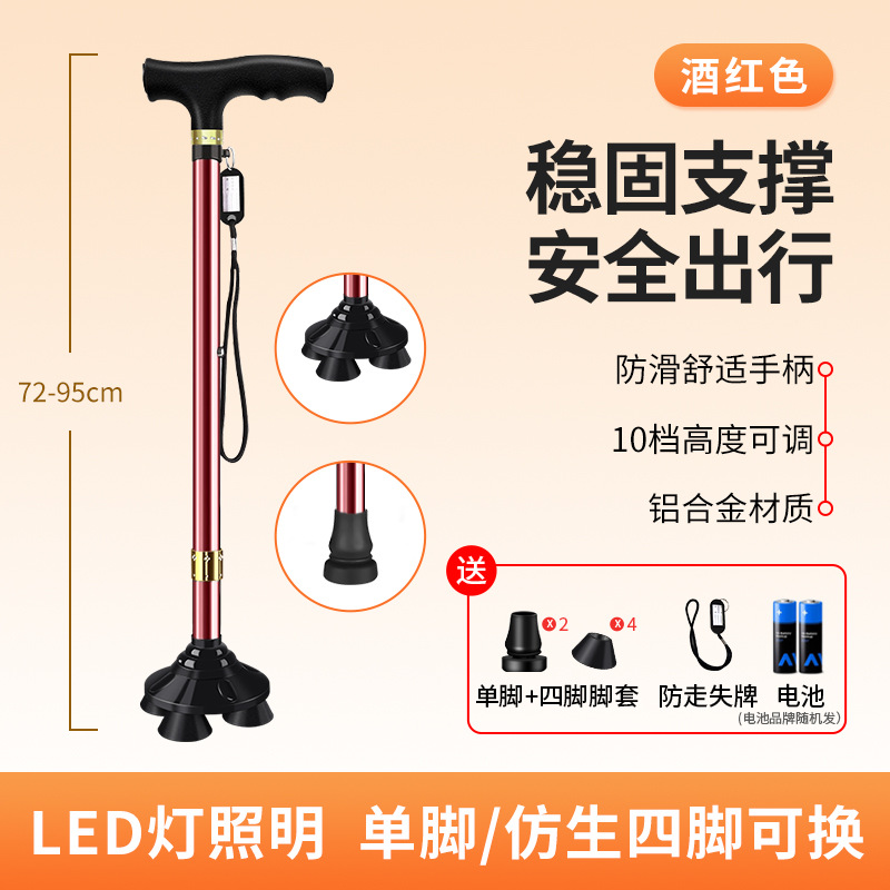 [single leg + non-slip four-leg dual-use/wine red] 303 cane