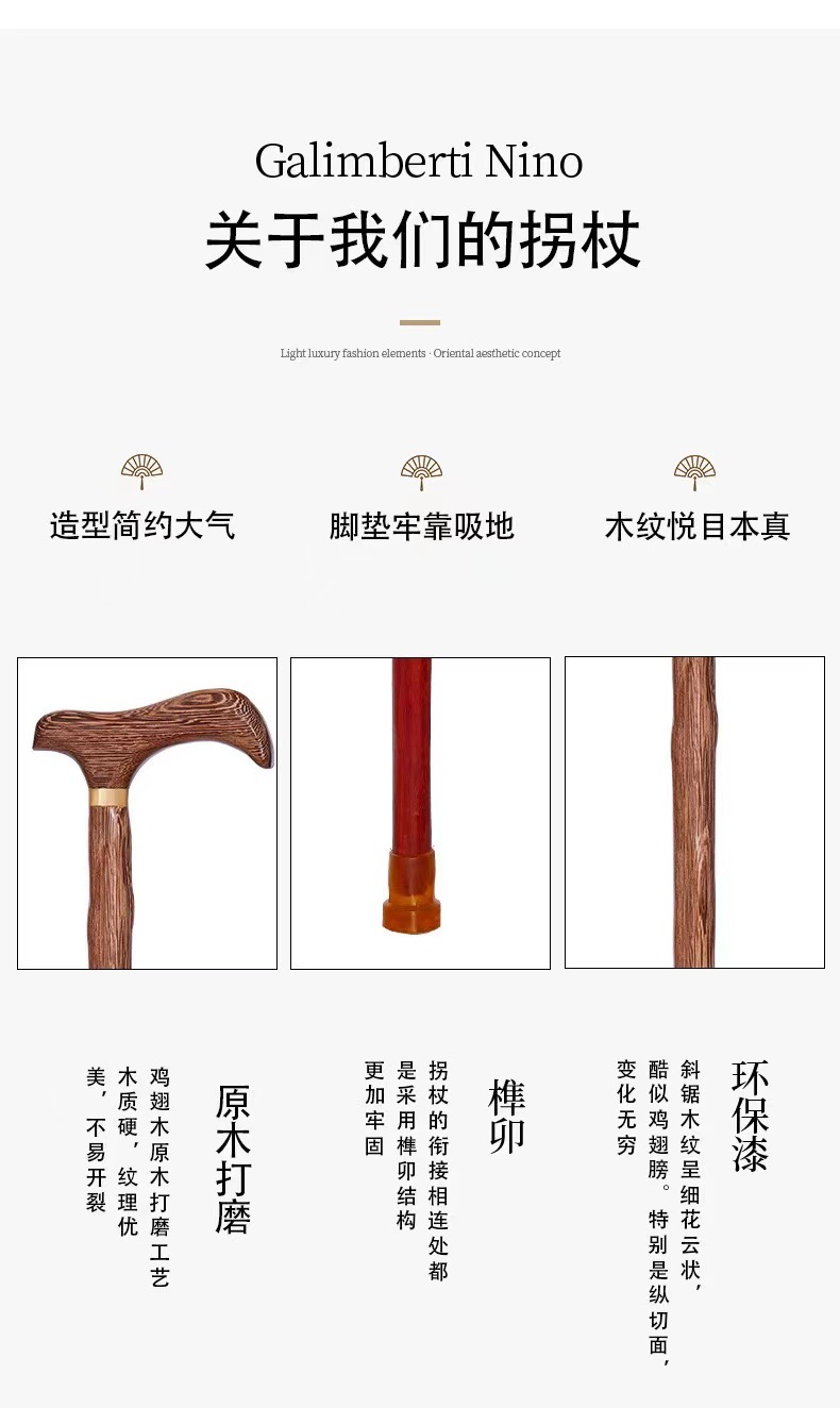 padauk bird handle crutch [anti-lost carrying strap +2 non-slip mats +1 four-corner mat]]