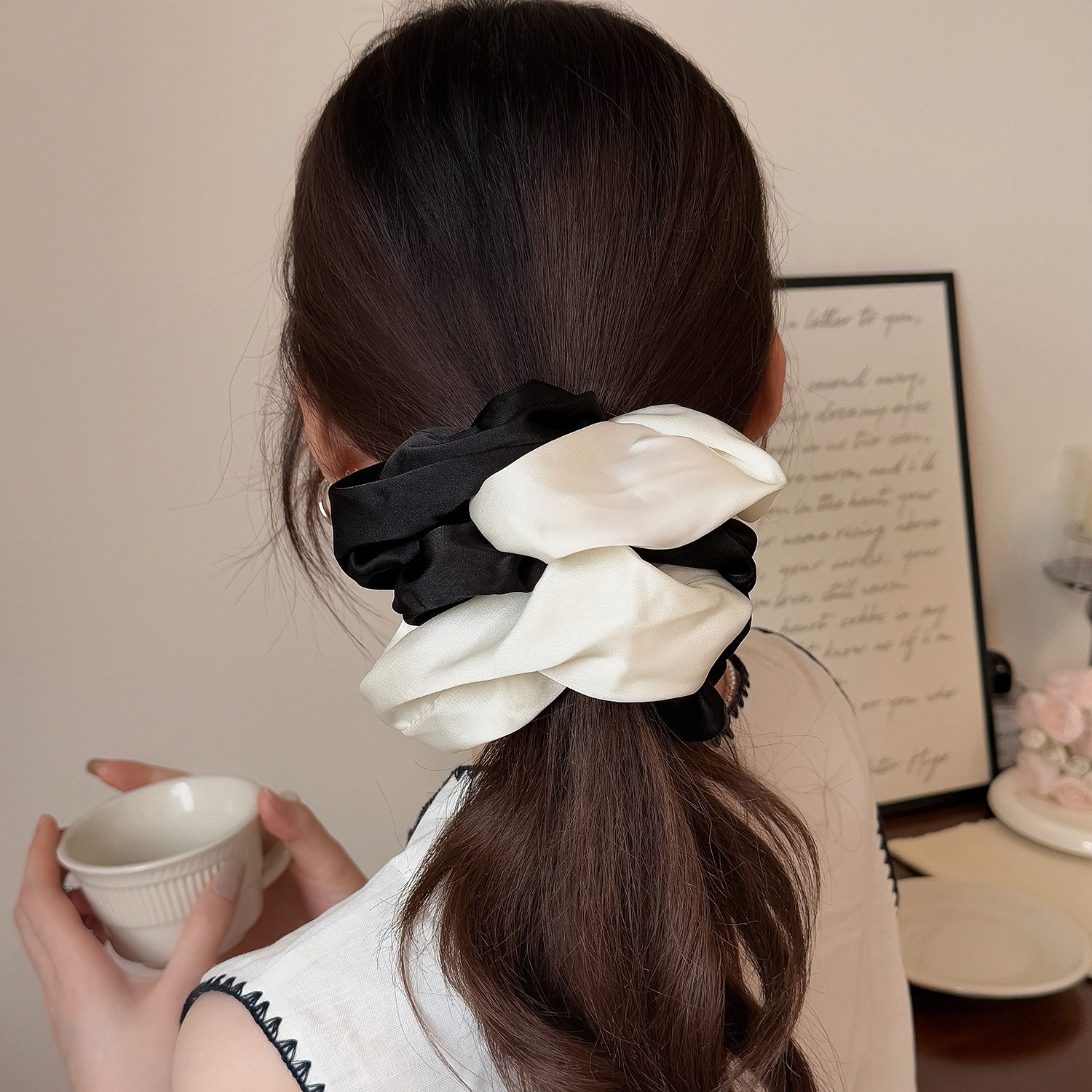black and white contrast color hair ring