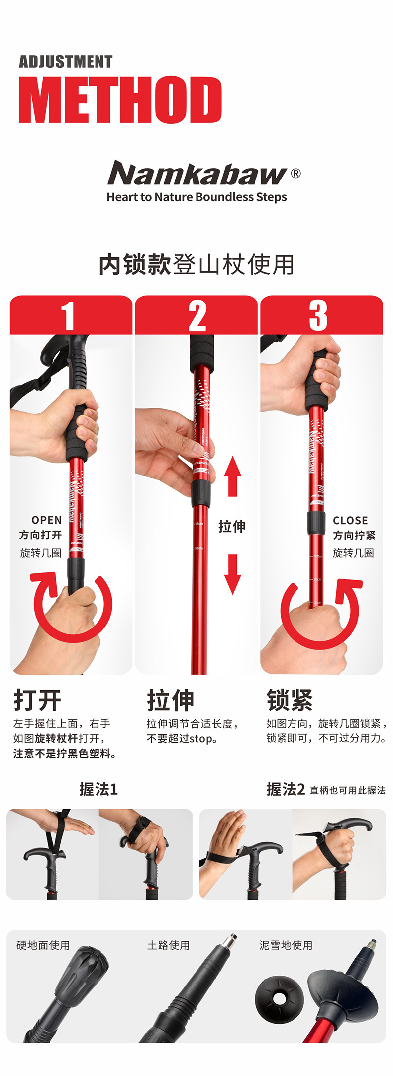 four-section curved handle red