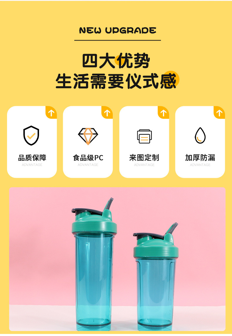sports cup fitness milk shake cup outdoors convenient portable single-layer plastic cup large capacity protein powder shake cup