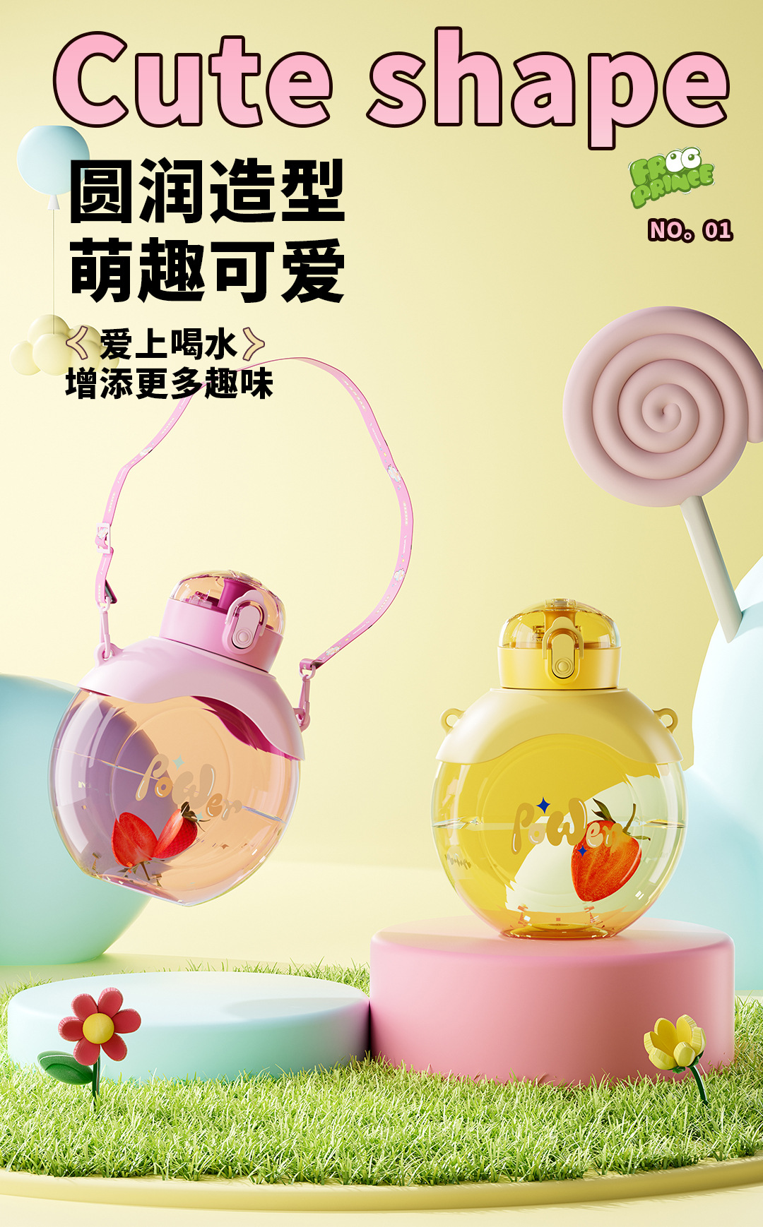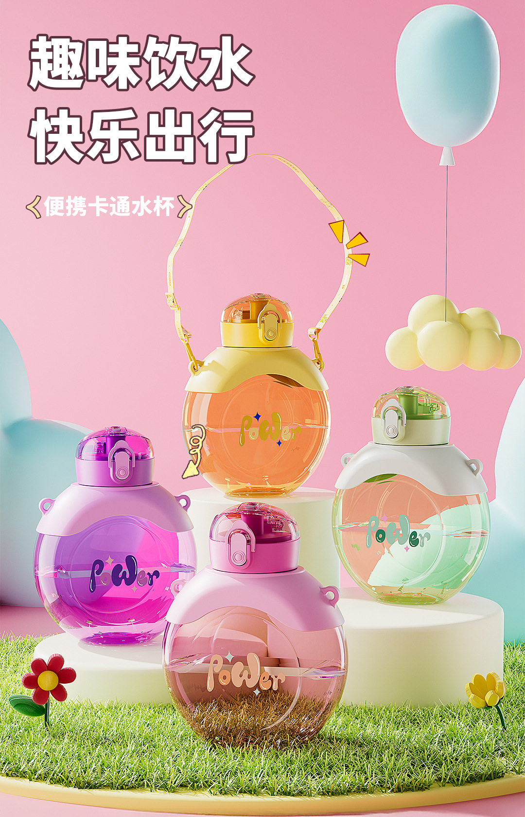 new vigorous small round cake good-looking straw plastic cup student girl's portable and simple water cup wholesale
