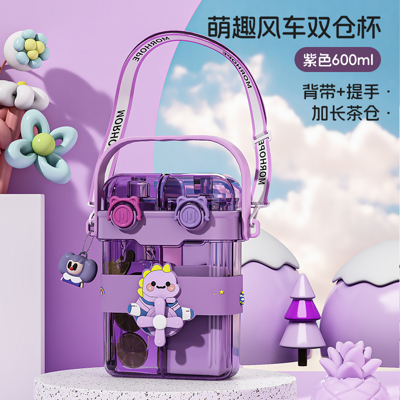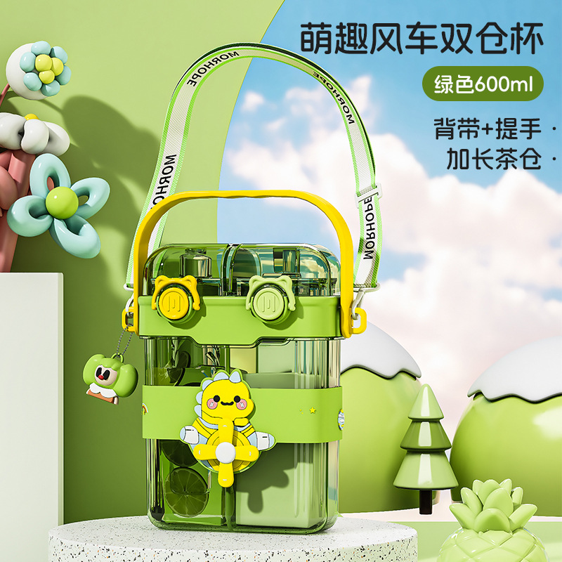 new creative cartoon fan children's double drinking cup cup with straw portable sports bottle large capacity student cup