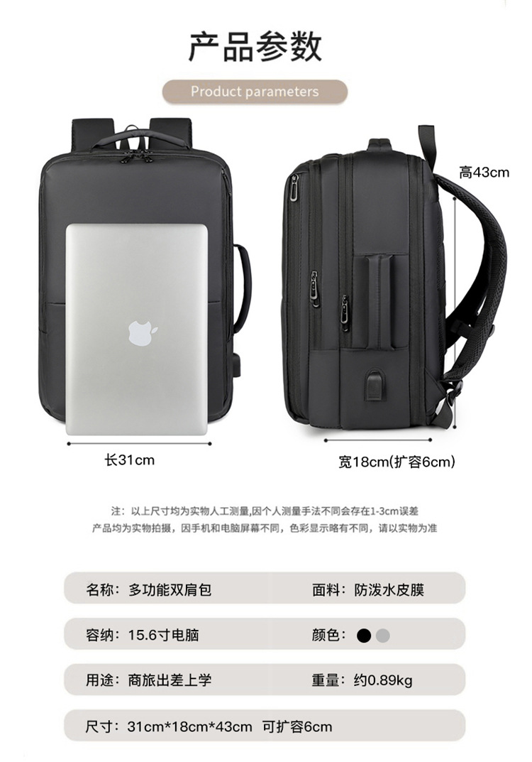 cross-border in stock wholesale large capacity men's business bag backpack female business trip 15-inch laptop bag