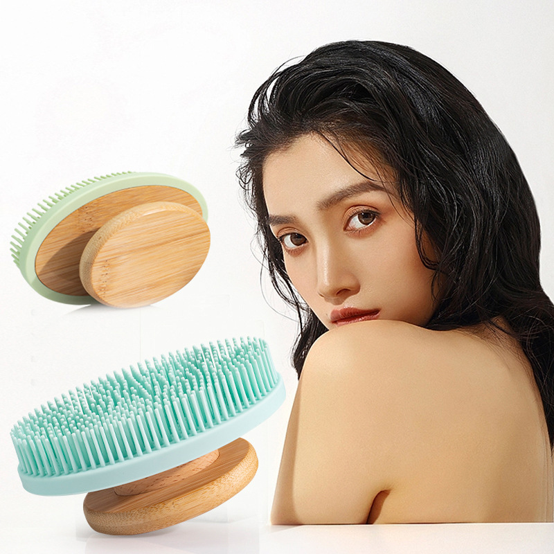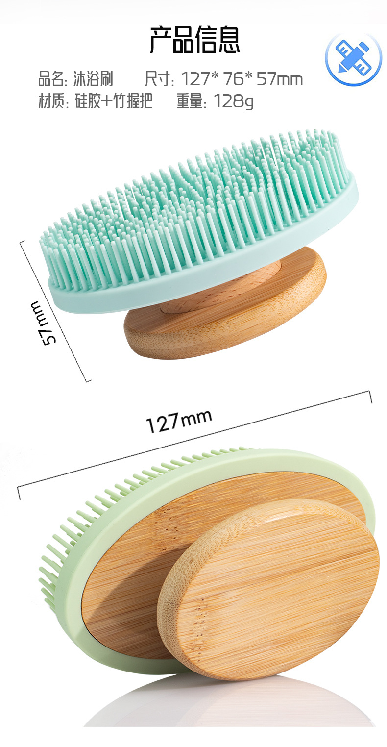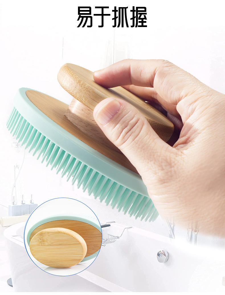 cross-border hand-held silicone bath brush portable detachable massage bath brush oval bamboo hand-held bath brush