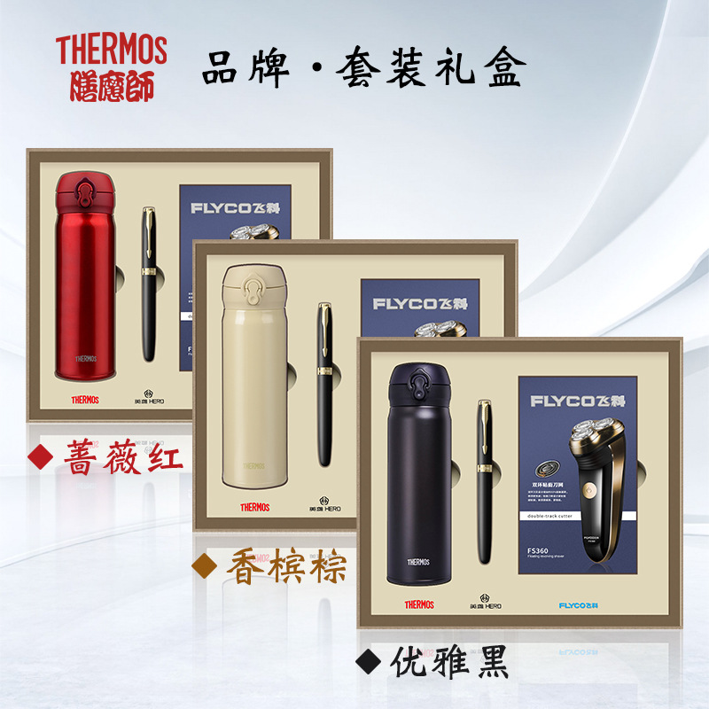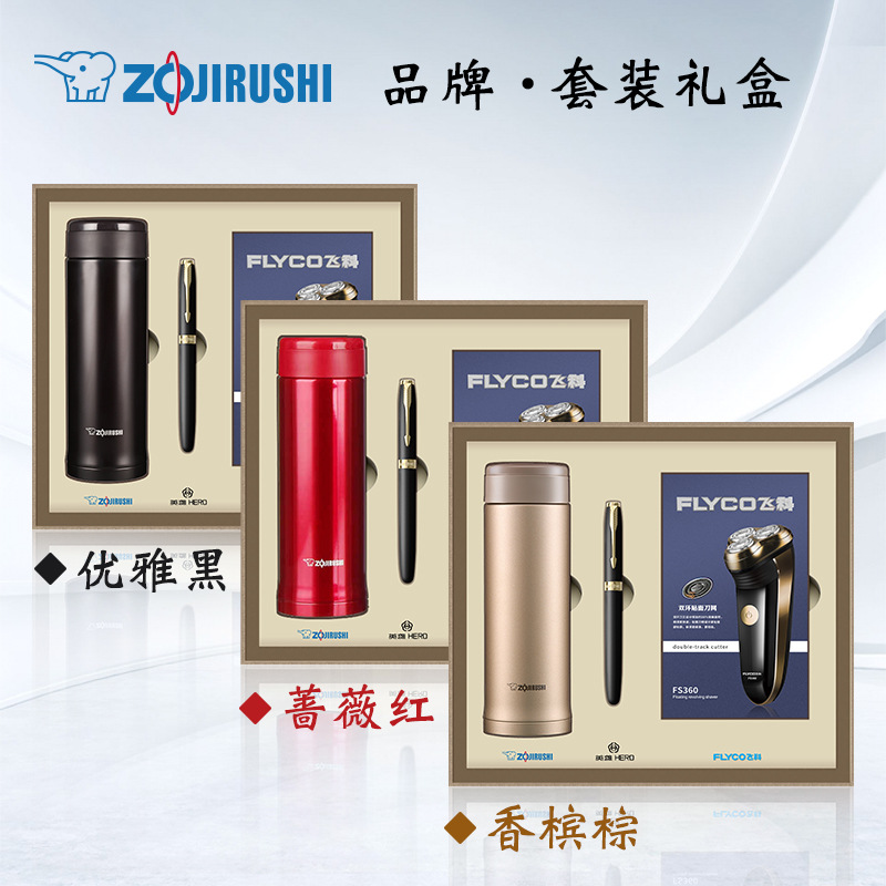 zojirushi thermal insulated bottle + hero signature pen + flyco shaver