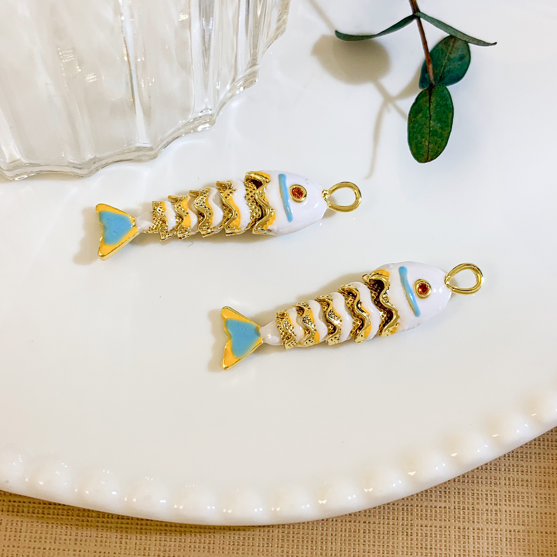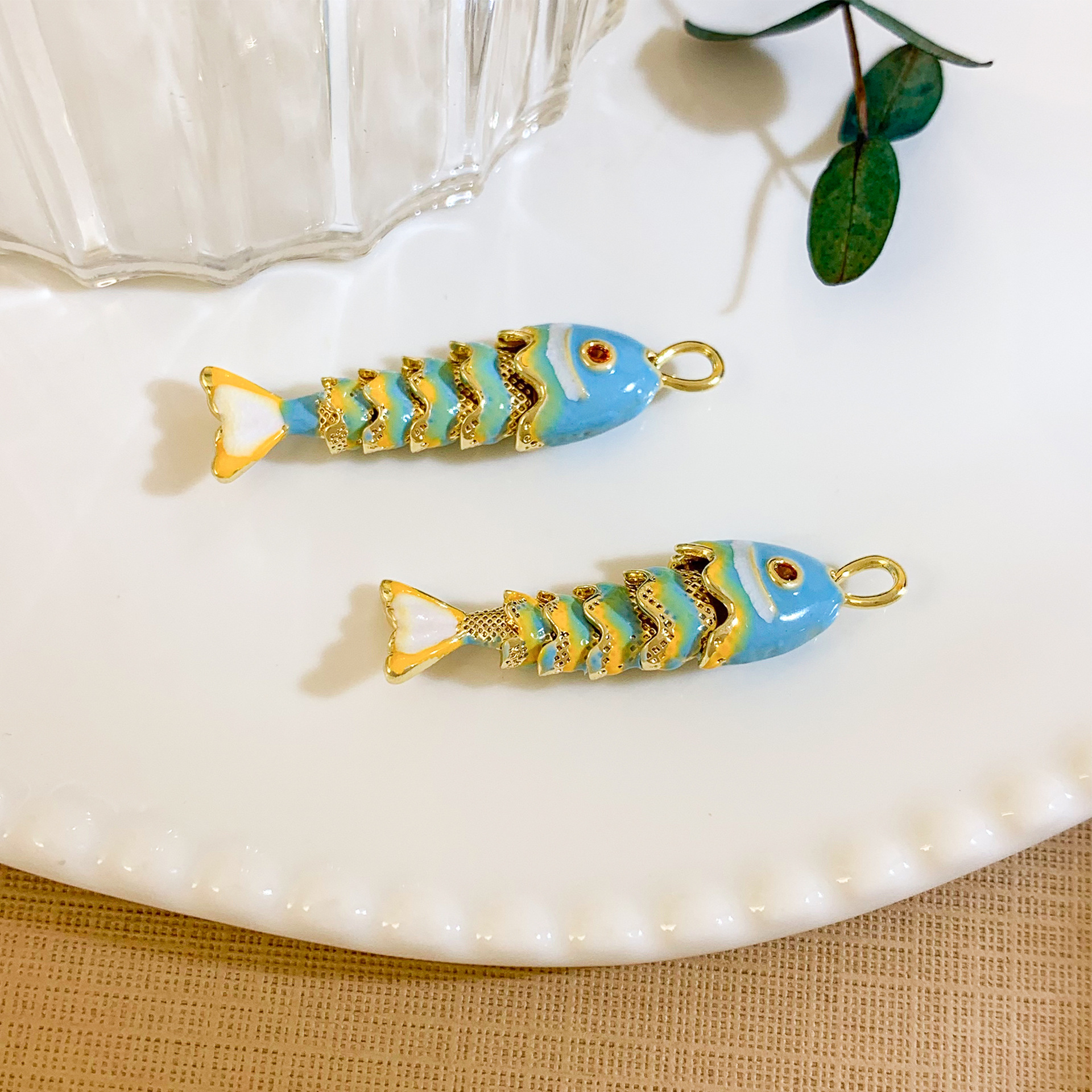 xl4399 movable koi pendant gold light blue medium