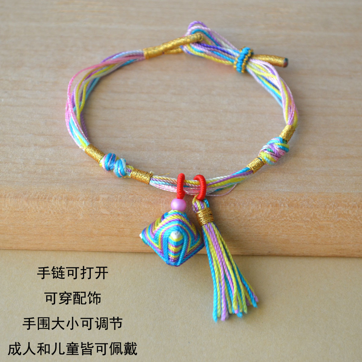 186069 colorful bamboo knot pink and blue rope can be opened