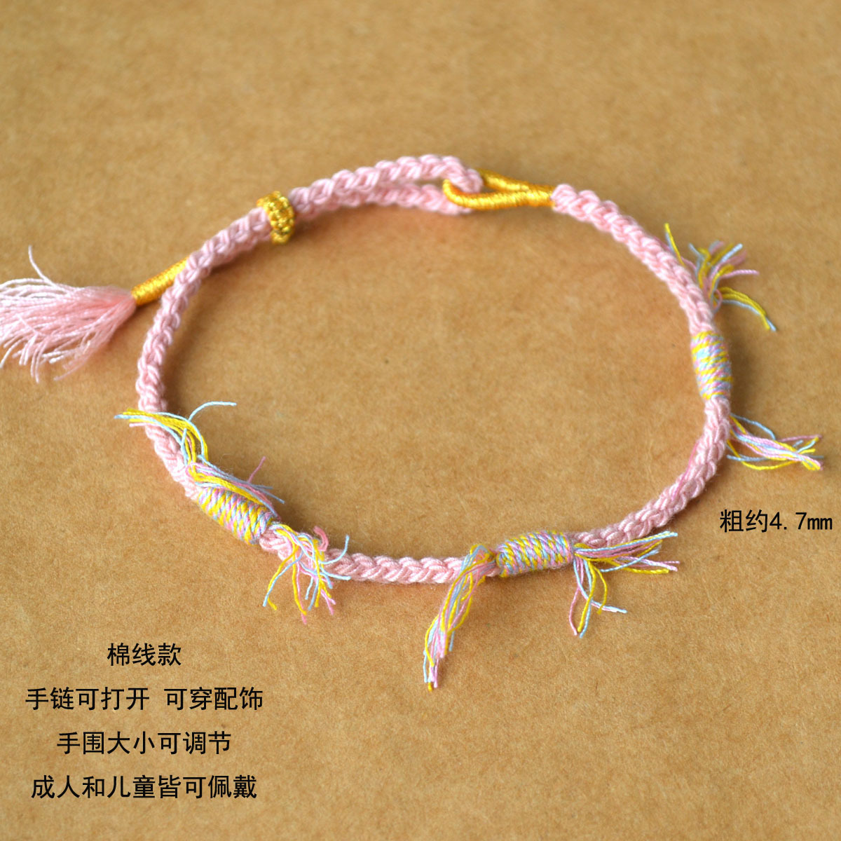 226061 colorful silk four-strand braid yellow and pink can be opened