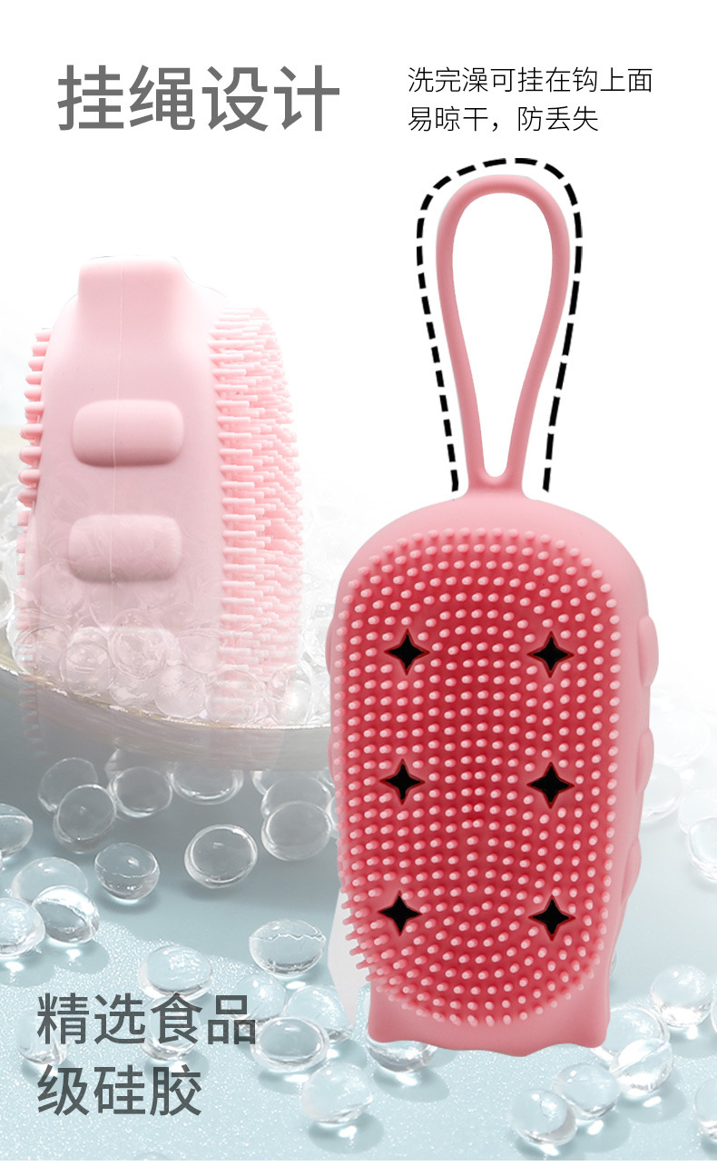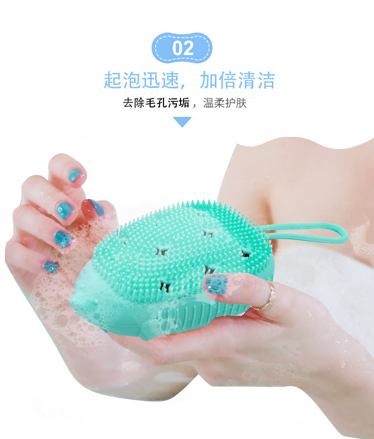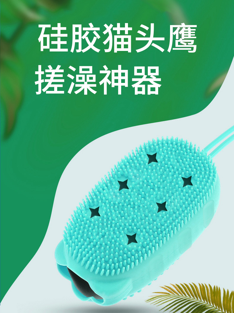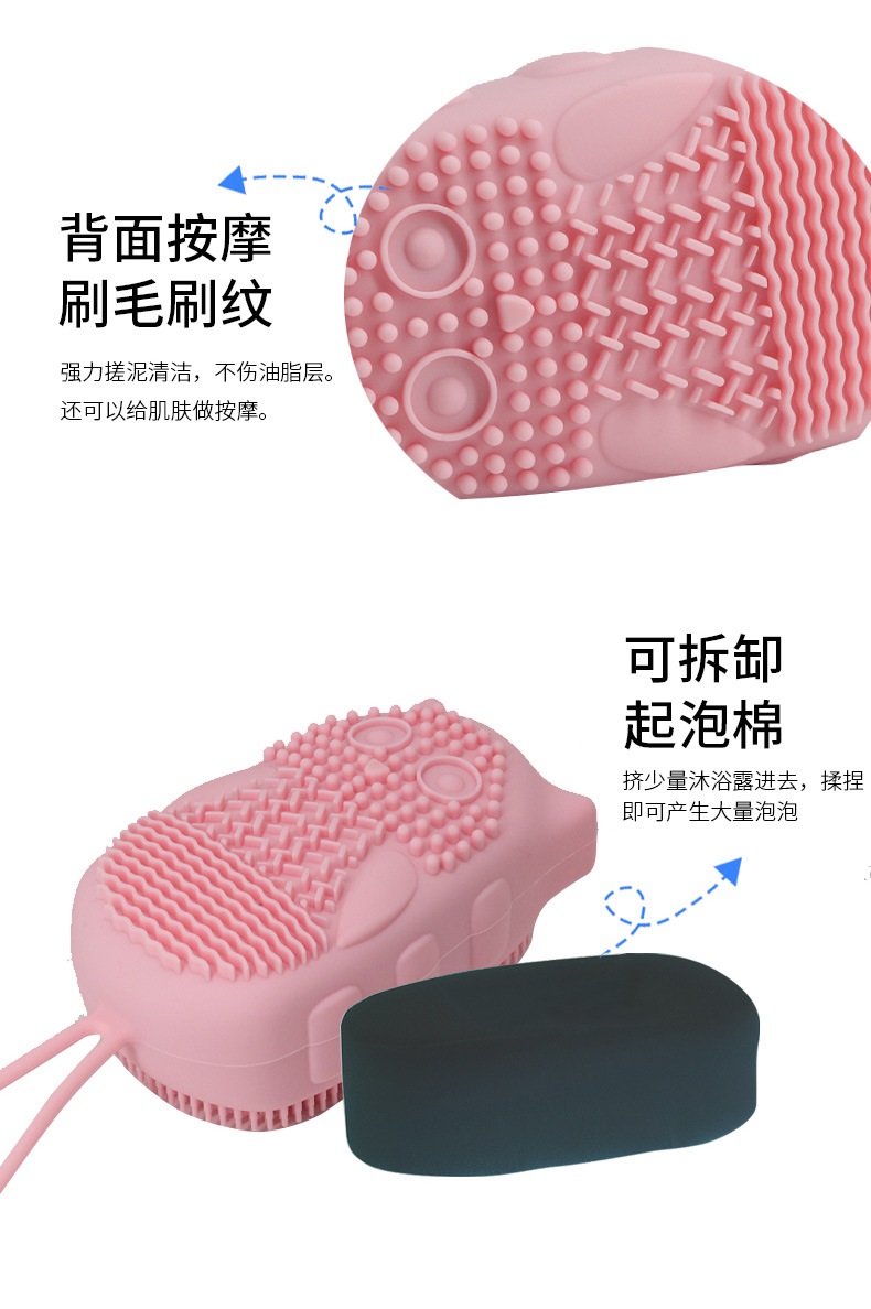 in stock wholesale hedgehog owl silicone bath brush handheld bath gadget sling with sponge silicone bath brush