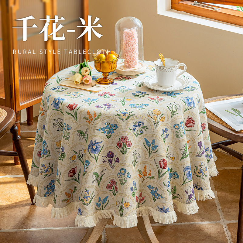 round tablecloth imitation cotton and linen small fresh jacquard tv cabinet side cabinet cover towel decorative tablecloth green wholesale