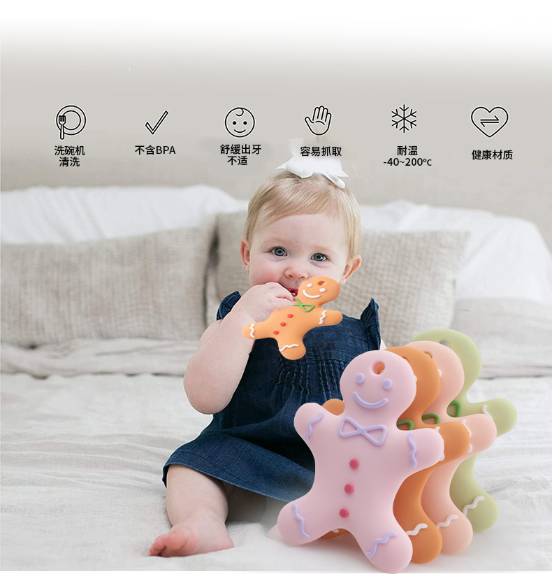 baby silicone molar teether christmas series children's anti-bite hand lanyard happy bite silicone baby gums teether
