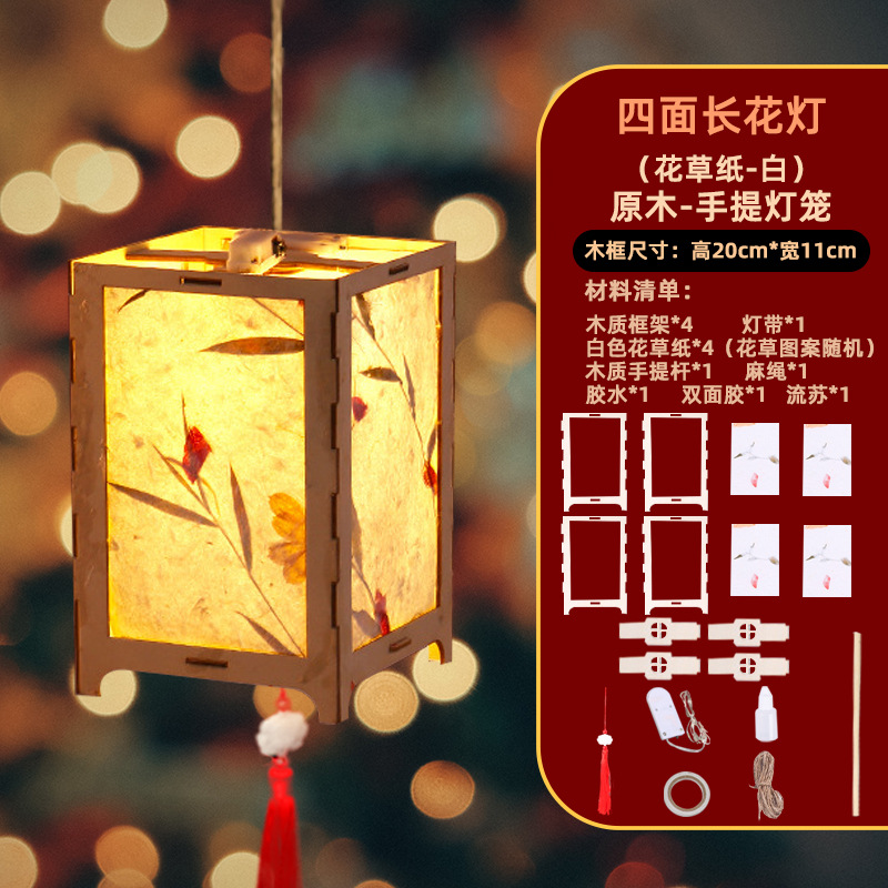 four sides long festive lantern (free lifting rod + lighting chain + tassel)