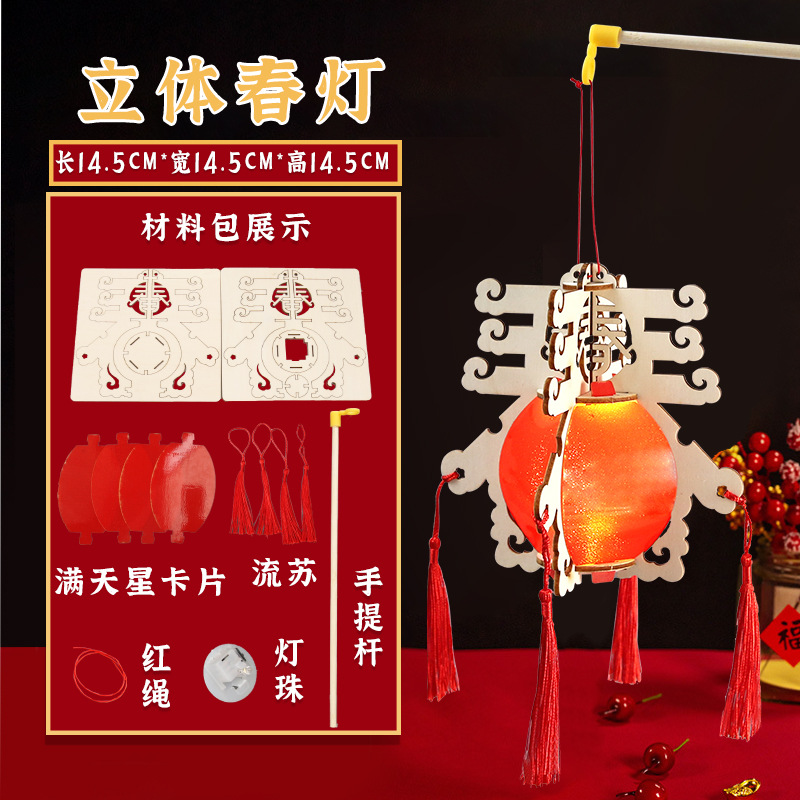 three-dimensional spring word festive lantern (free lifting rod + led light + tassel)
