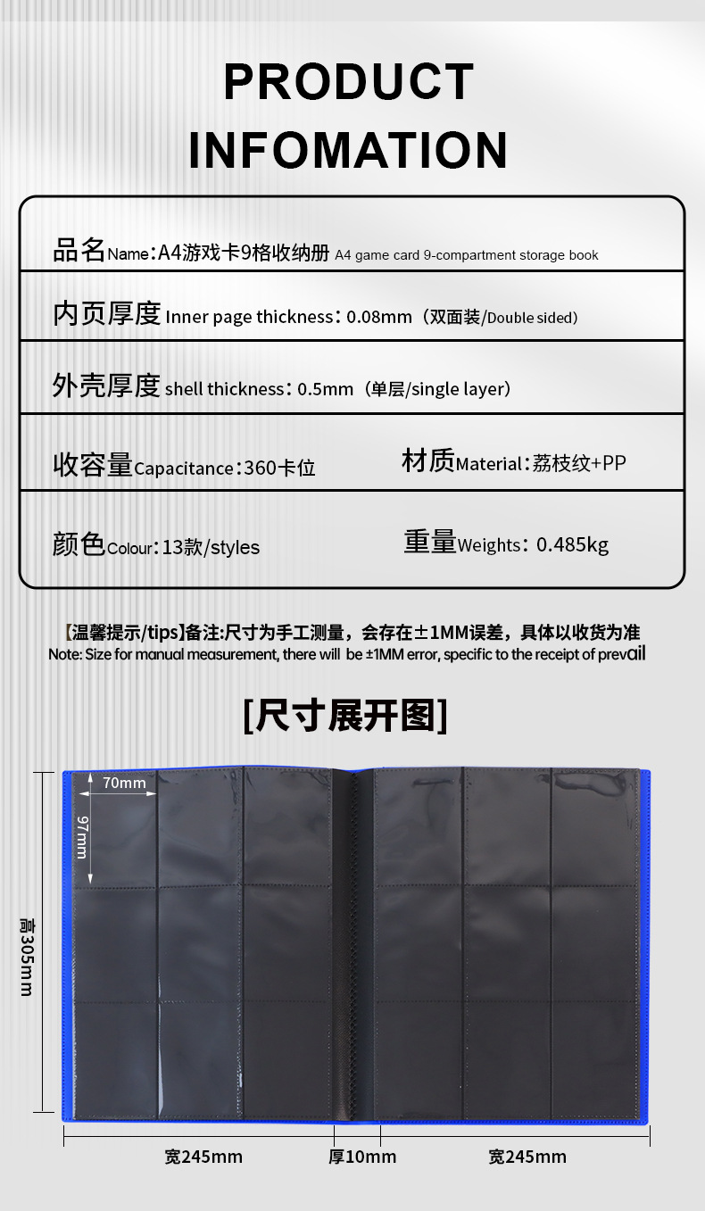 9 grid pp strap 360 card binder blue