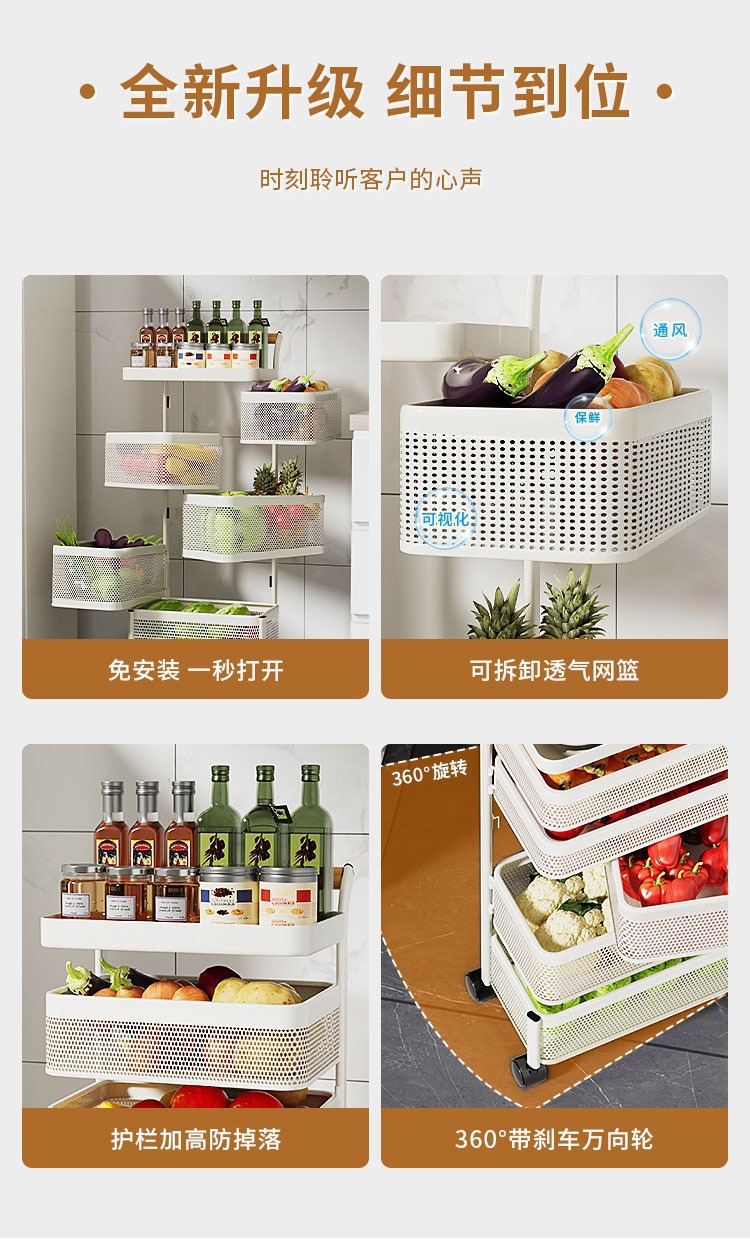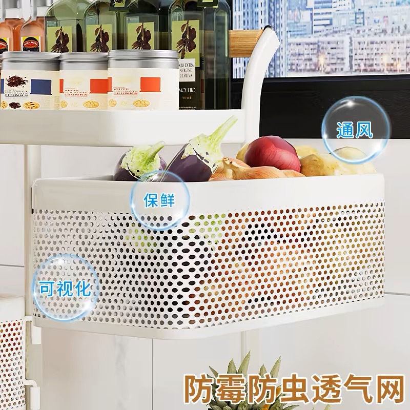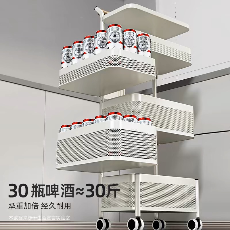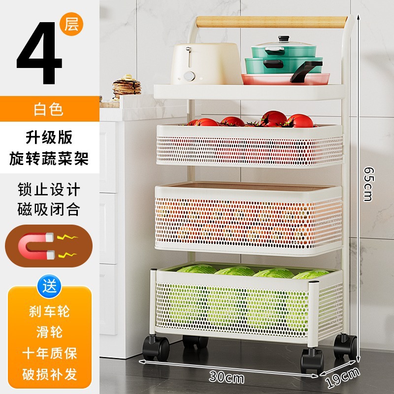 4-layer white x wooden handle trolley-removable mesh basket [carbon steel material]]