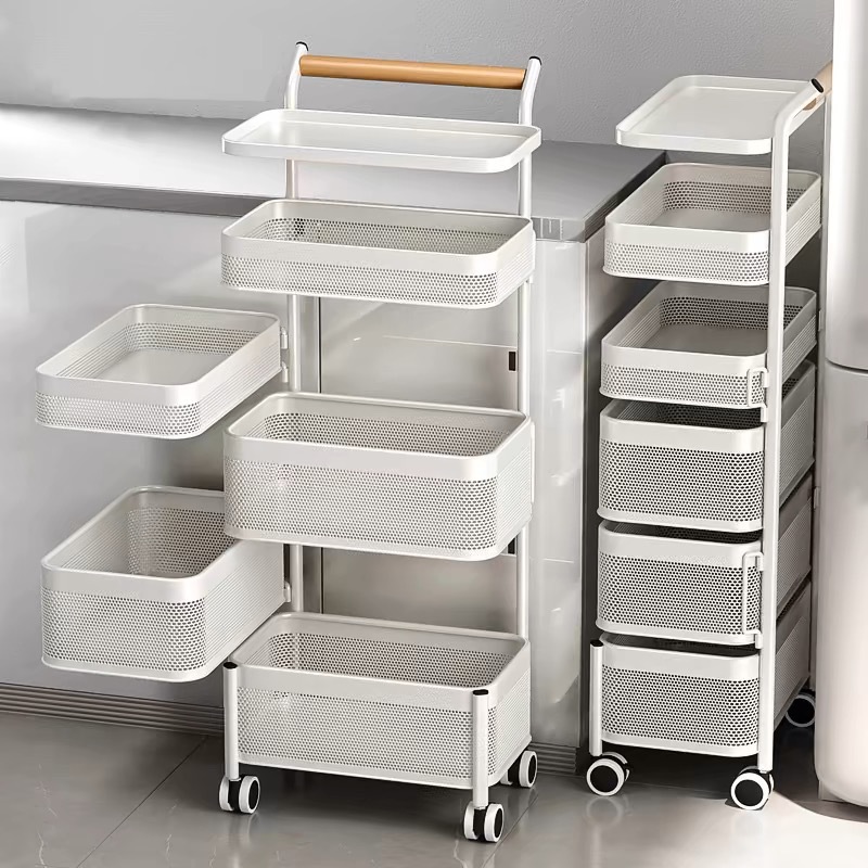 6-layer white x wooden handle trolley-removable mesh basket [carbon steel material]]