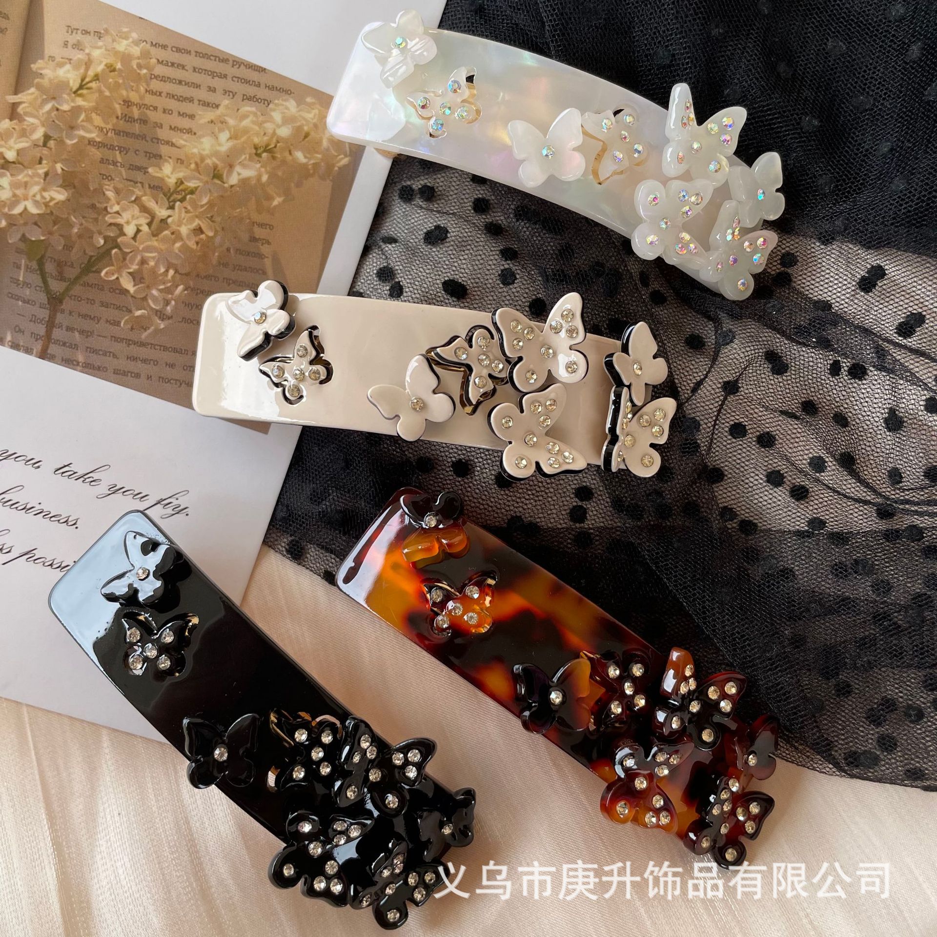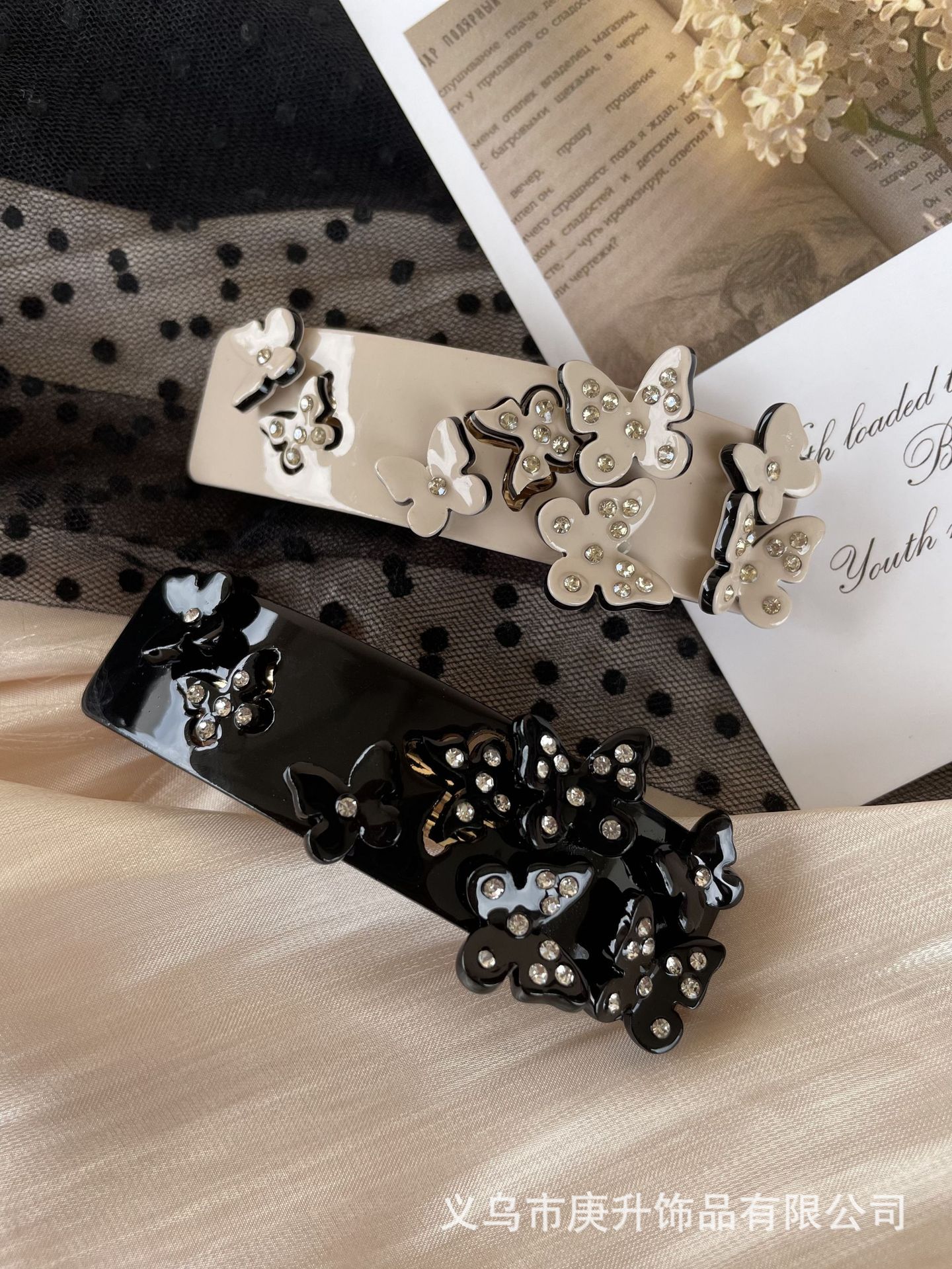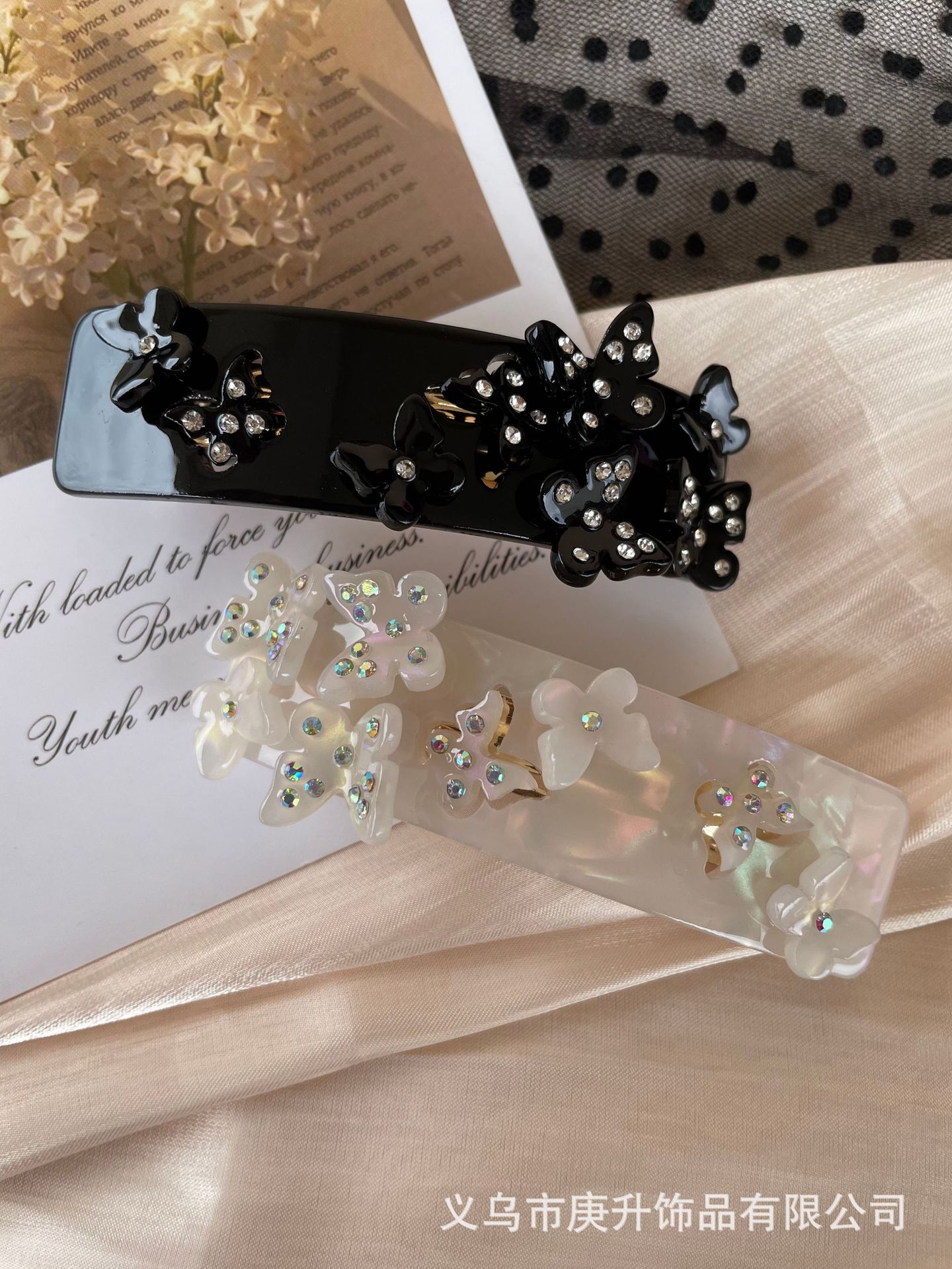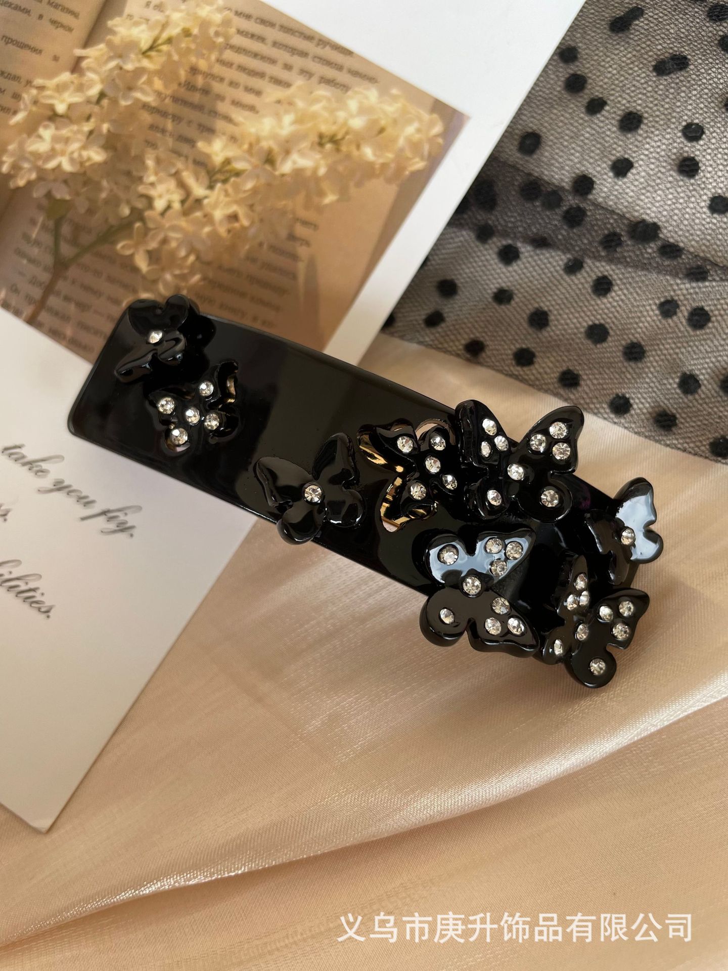 butterfly rhinestone spring clip black (about 8cm)