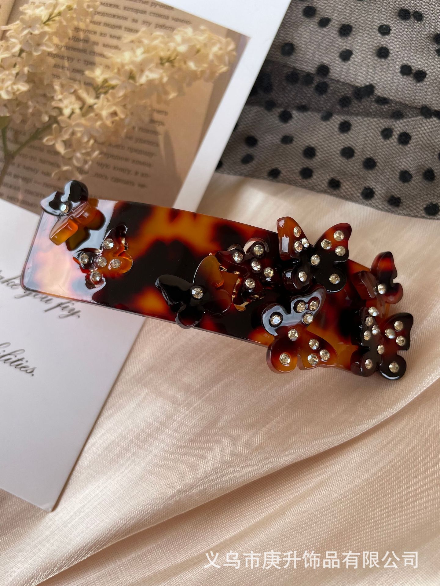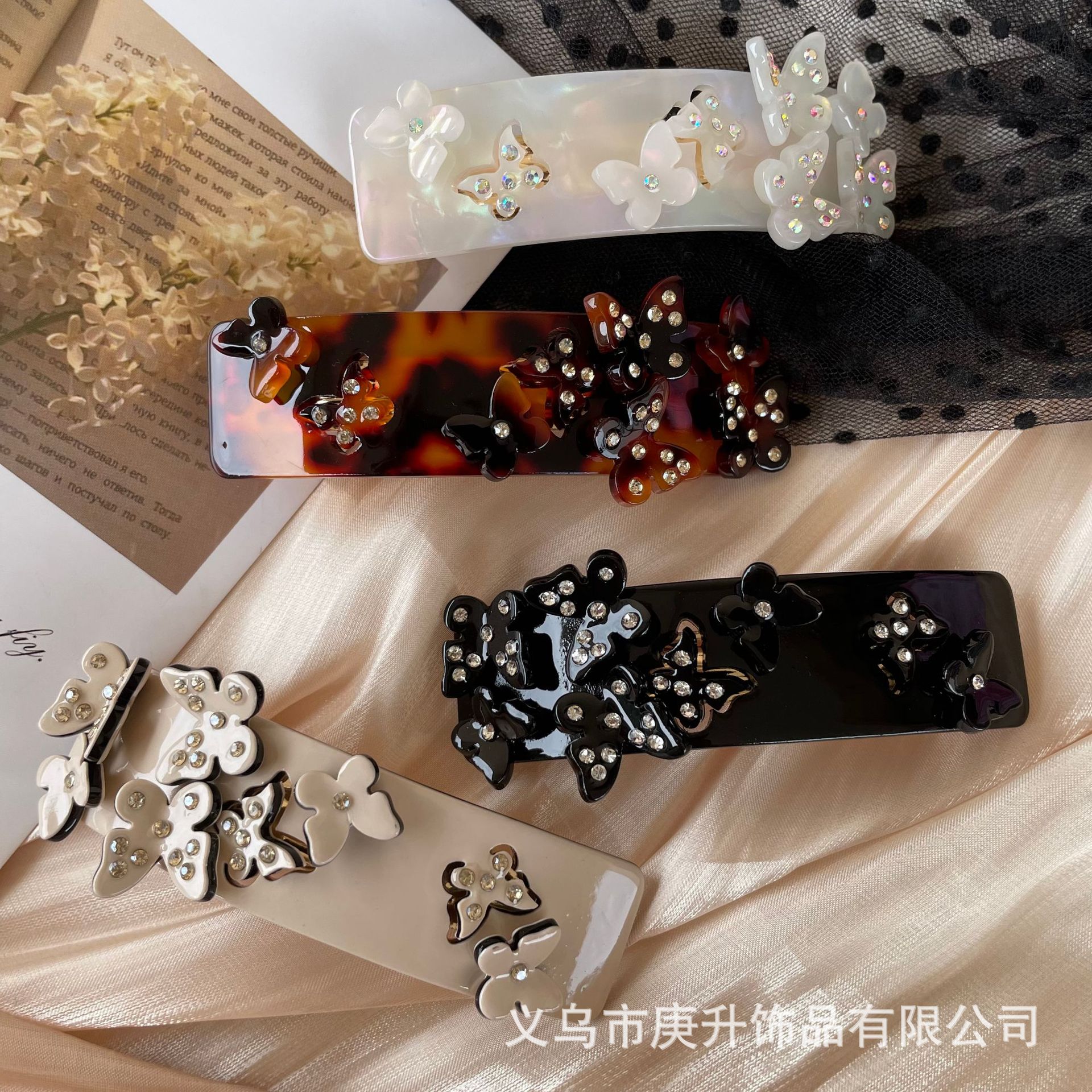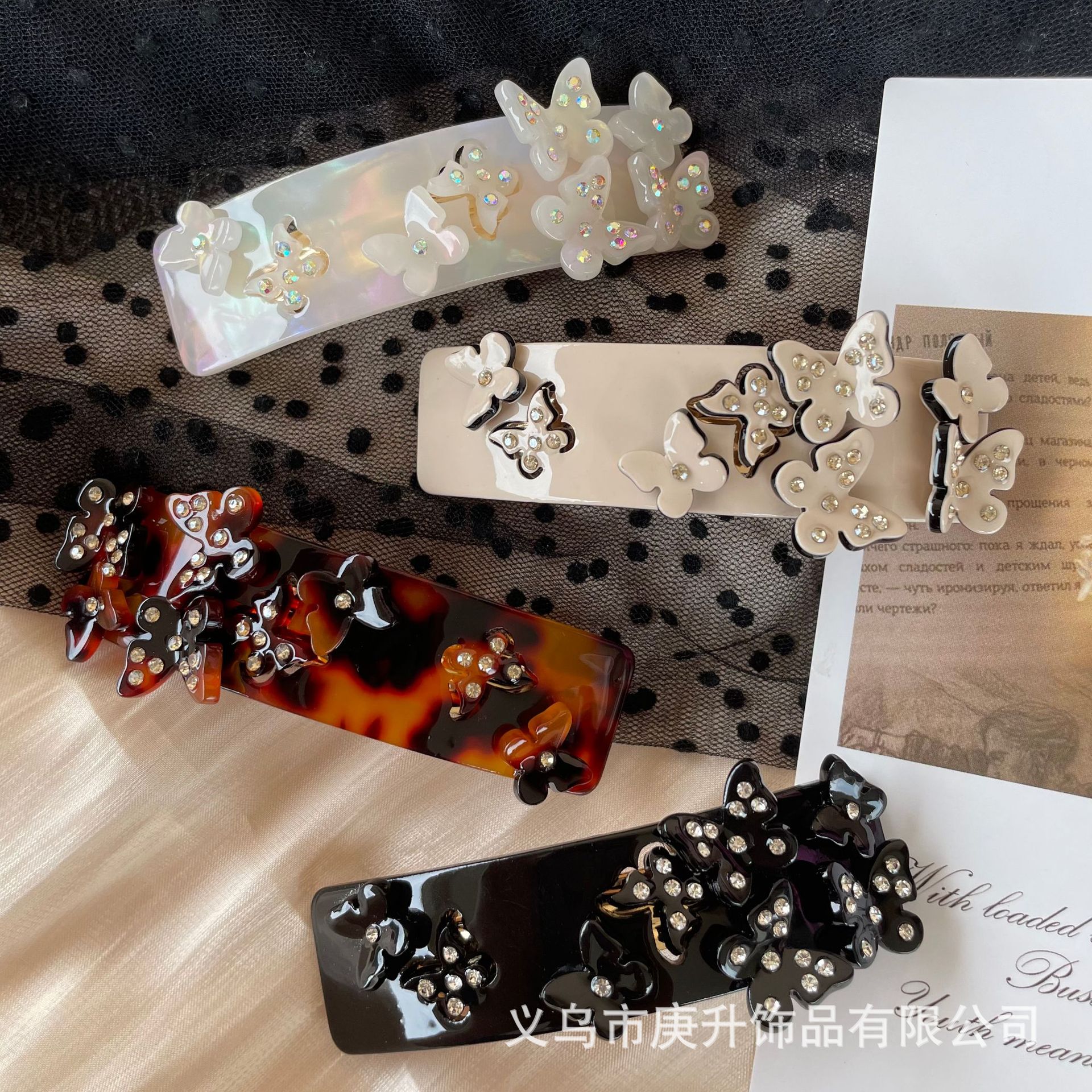 butterfly rhinestone spring clip black (about 8cm)