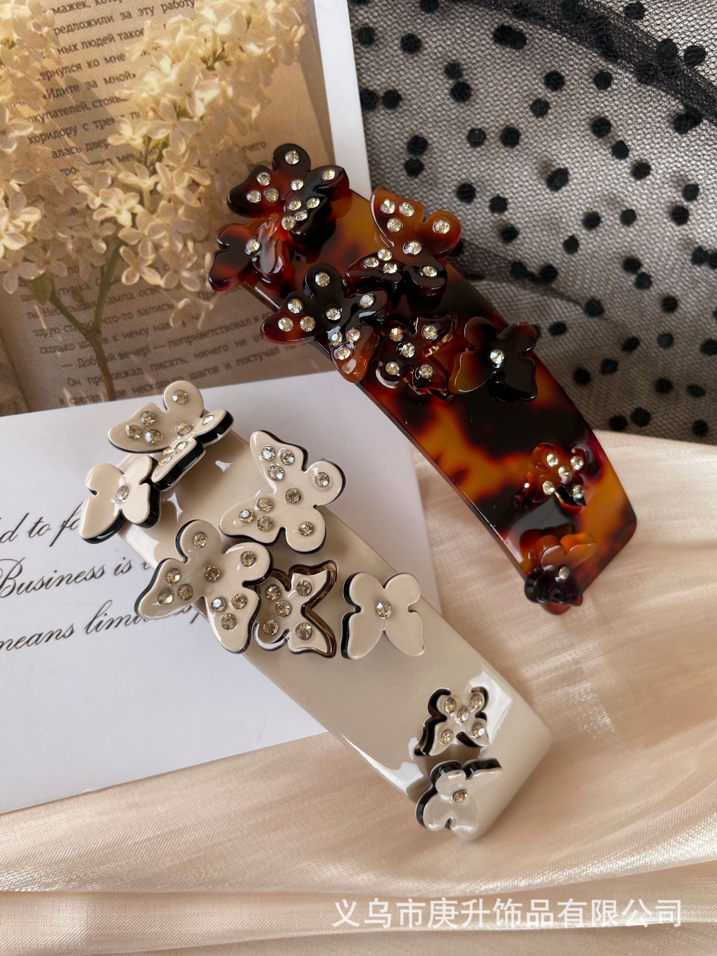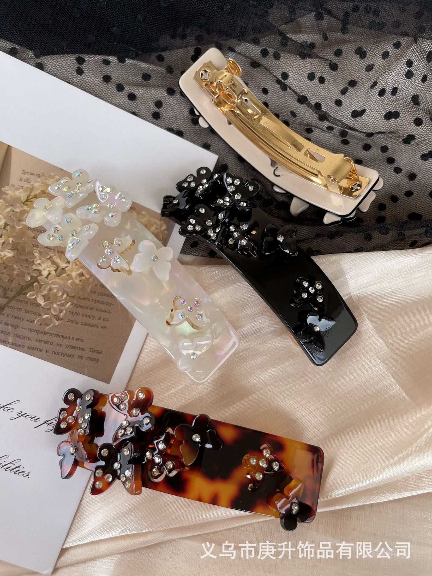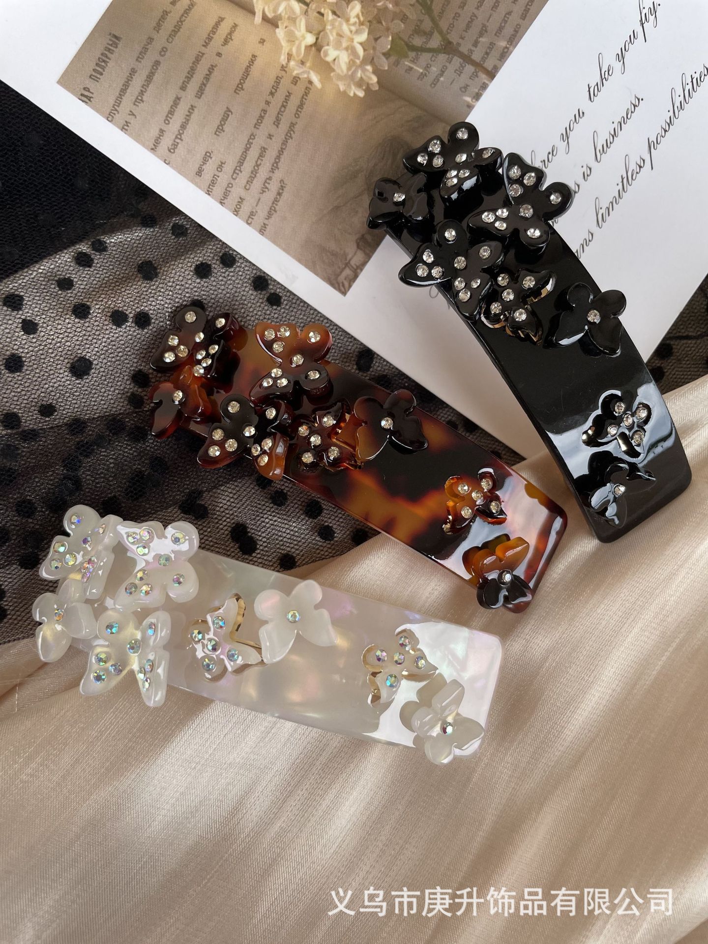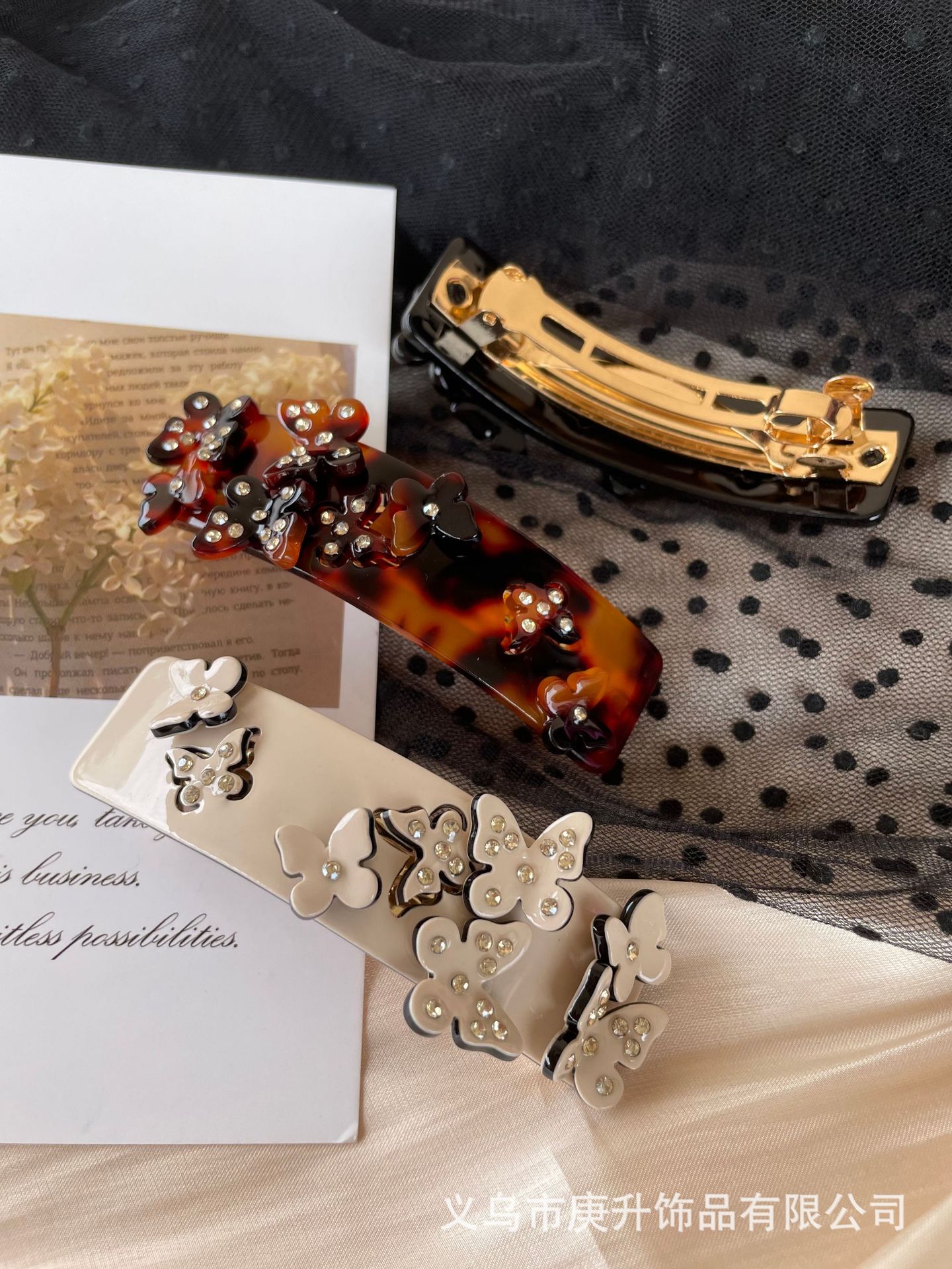 butterfly rhinestone spring clip black (about 8cm)