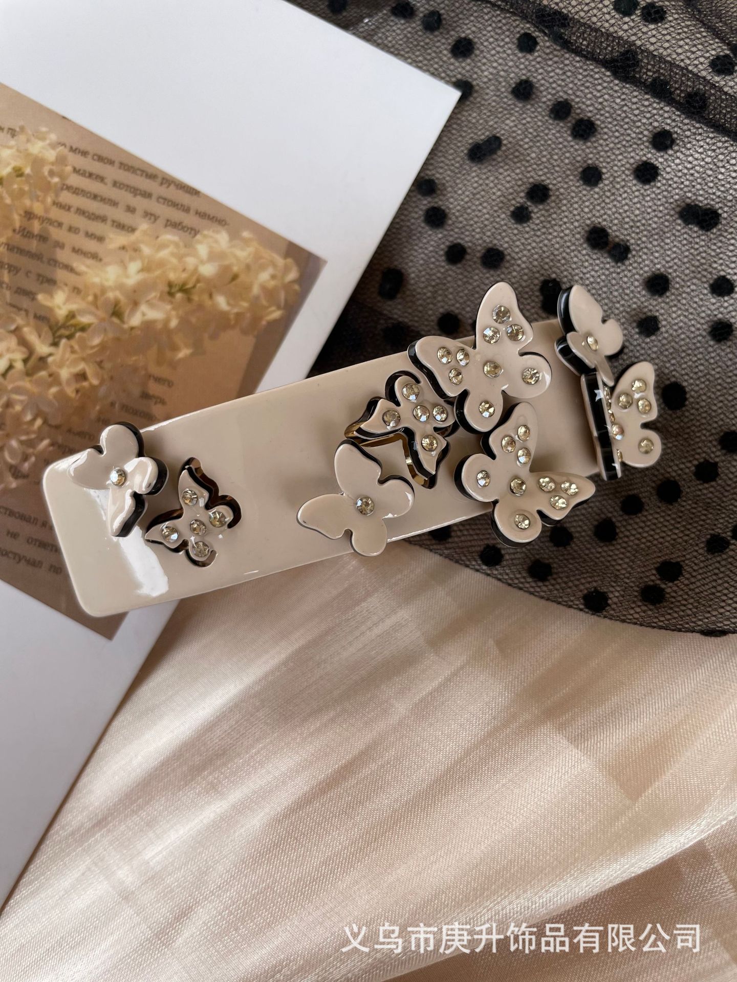 butterfly rhinestone spring clip beige apricot (about 8cm)