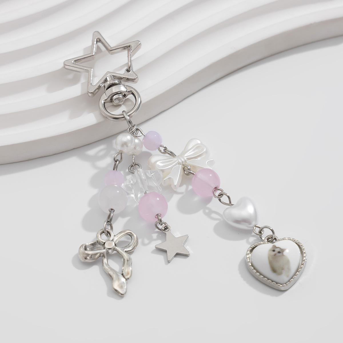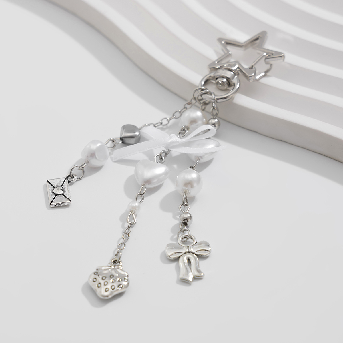 Product Category: Key Chain/Key buckle (0213) Product color: White K/White K Product material: ribbon + imitation pearl + alloy Product Weight and Size: See the image for measurements (the dimensions and weight are all manually measured and may vary) A little error, specificallyPlease note the dimensions before purchase, as the actual product may vary. Product packaging: Independent OPP bag packaging |