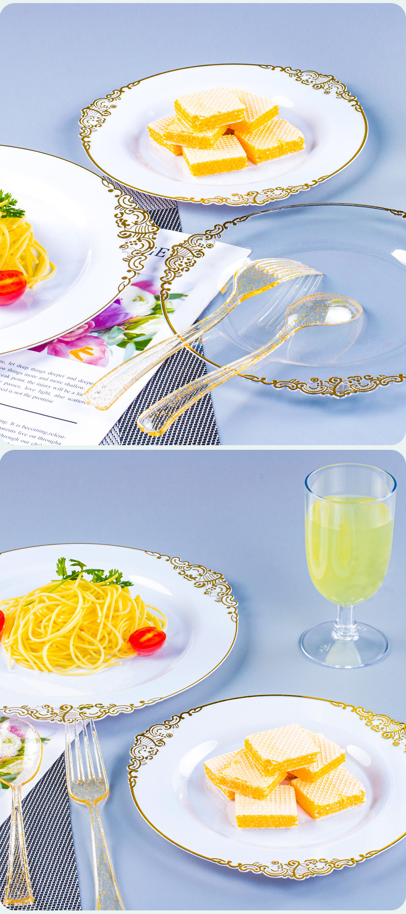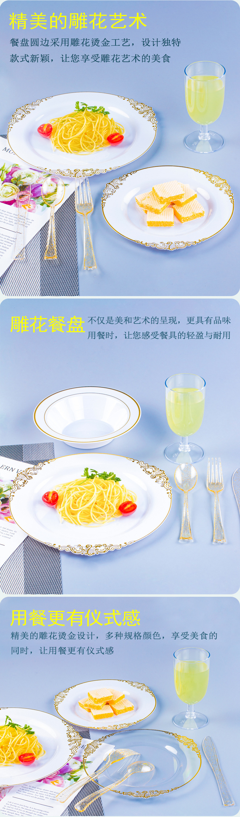 26 diameter carved dinner plate (transparent golden edge 20 pcs)