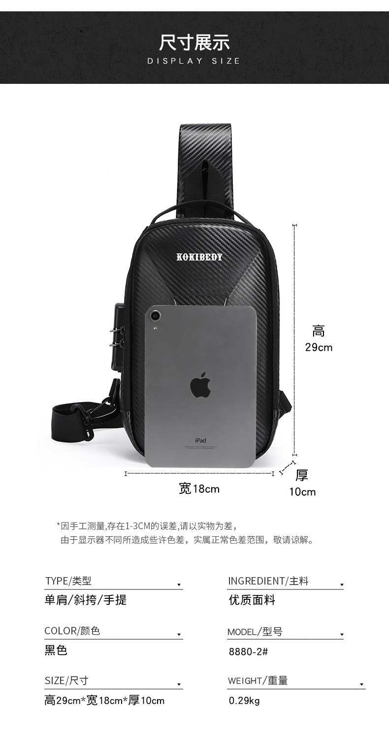new cross-border hard shell men's chest bag texture large-capacity crossbody bag password lock riding motorcycle bag business shoulder