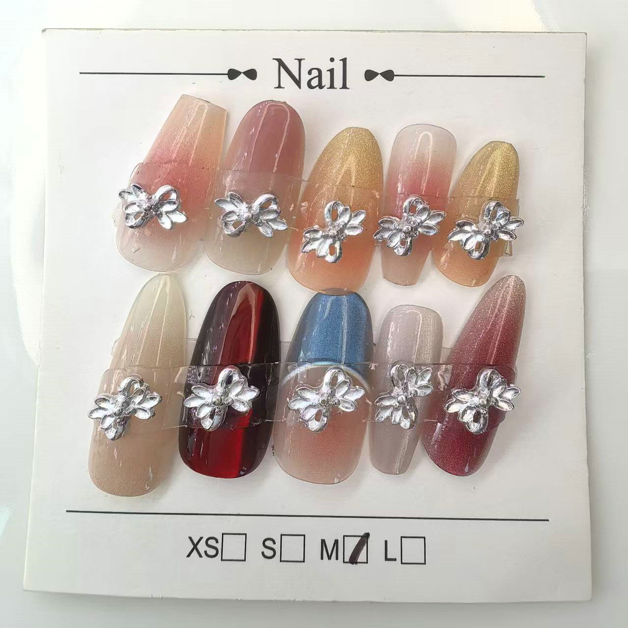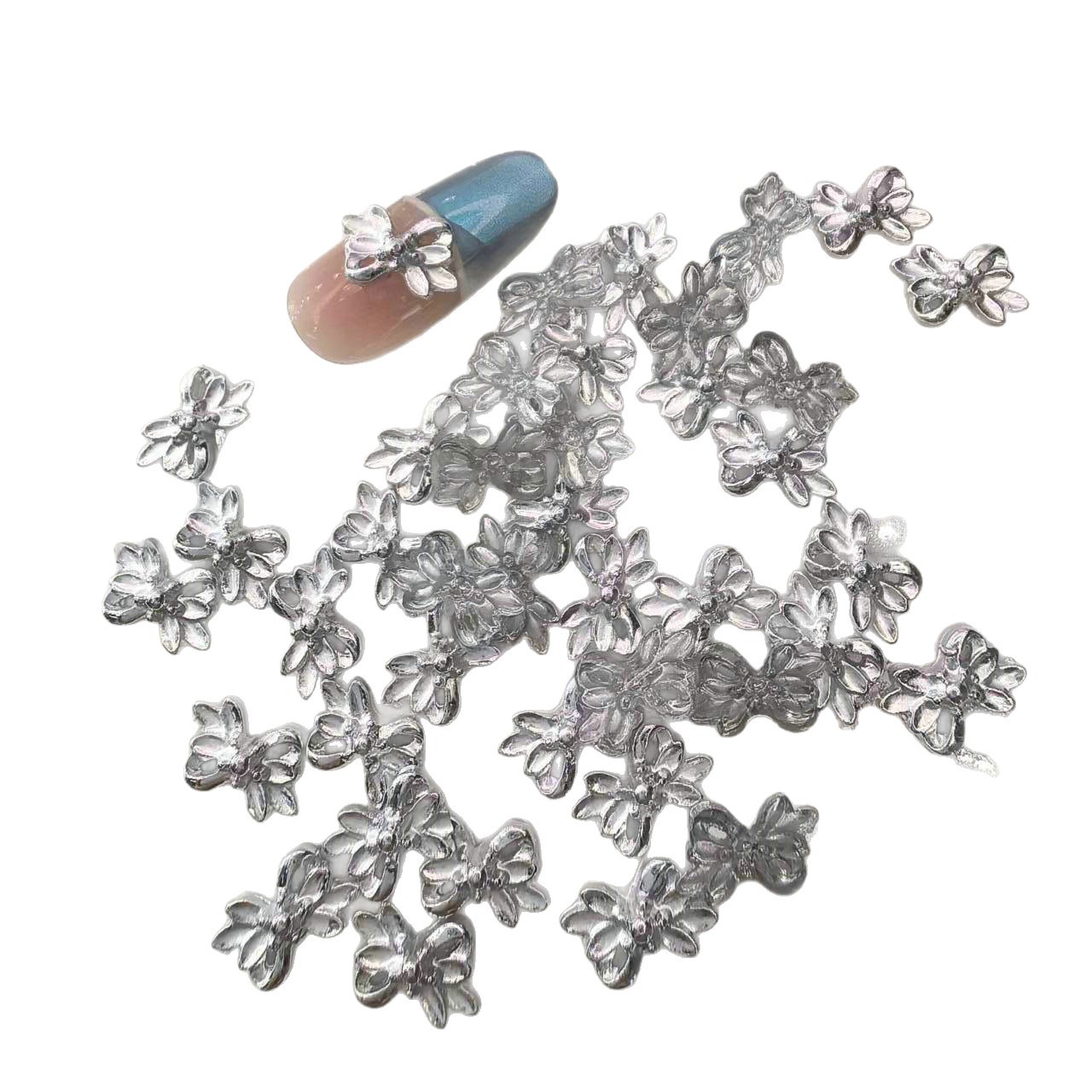 5. Nail Decorations: Nail decorations refer to adding various patterns, colors, or ornaments to the surface of the nails to enhance the overall aesthetic appeal. Metal butterfly bows for nail art are a popular choice in this field.