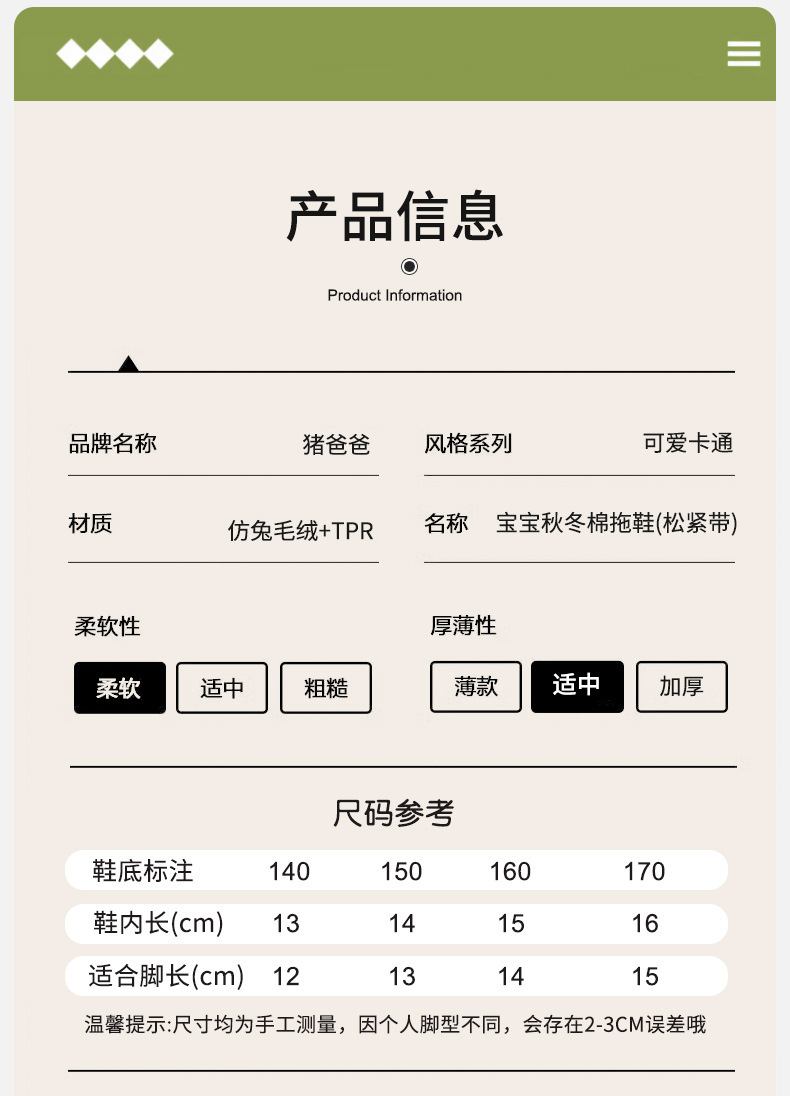 | 160 (shoe inner length 15cm) | CN¥ 17.9 | 999999 pair available |