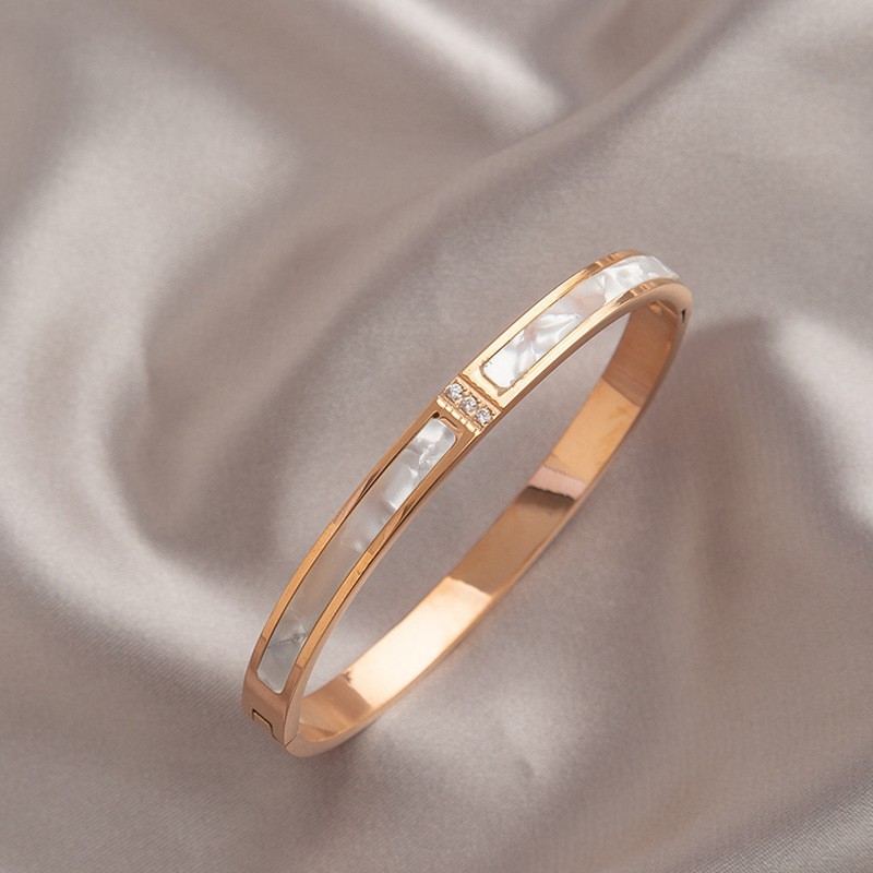 rose gold three diamond shell bracelet