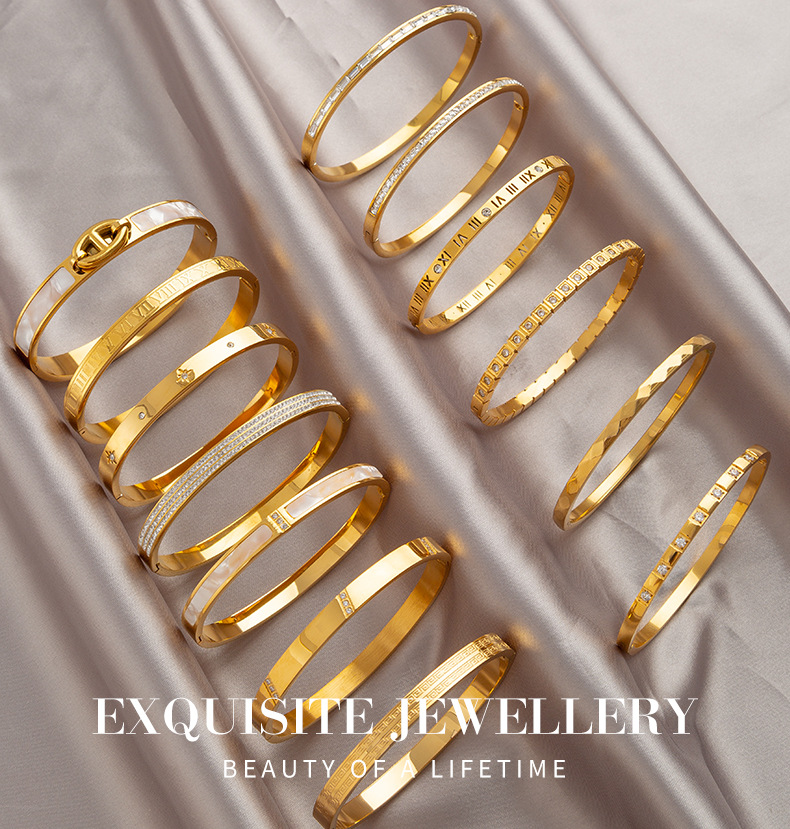 rose gold diamond studded hollow roman bracelet